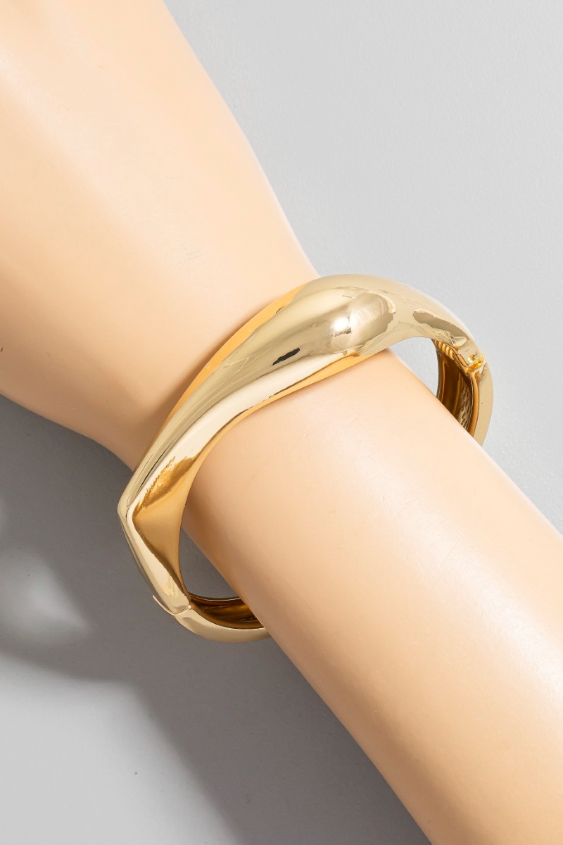 - This bangle bracelet brings a unique irregular shape hinge style. Immerse yourself in fashion finesse with this statement bangle bracelet.