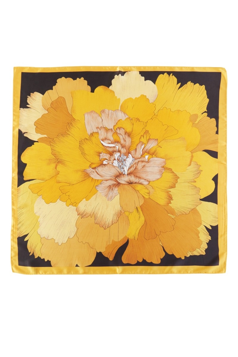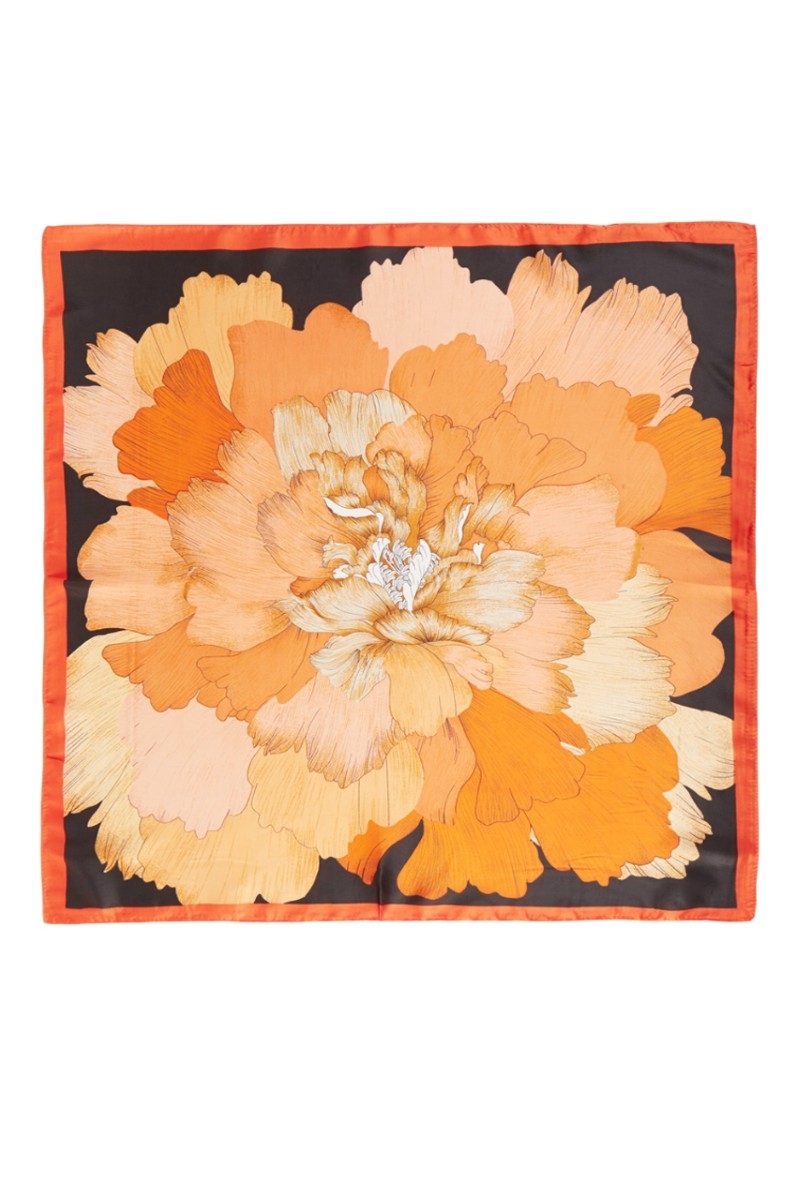 - This scarf displays a fashionable large blooming flower print style. Witness the perfect fusion of style and functionality as this scarf effortlessly complements your lifestyle.