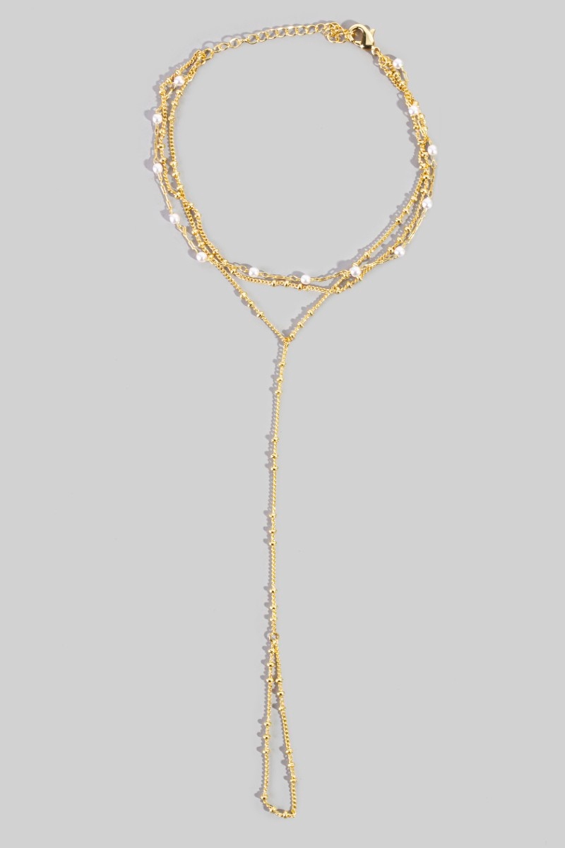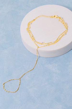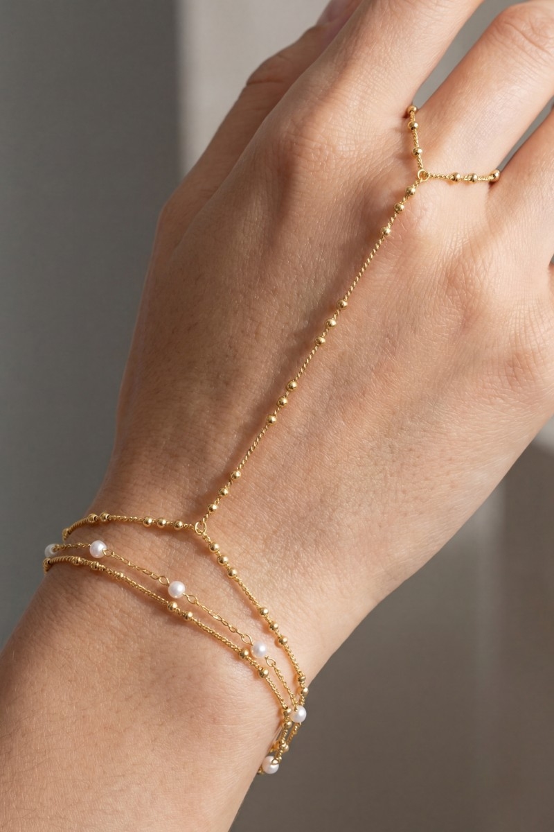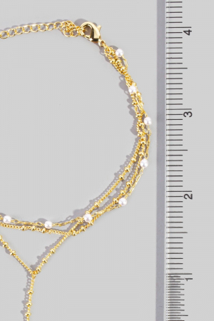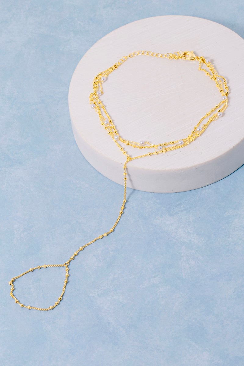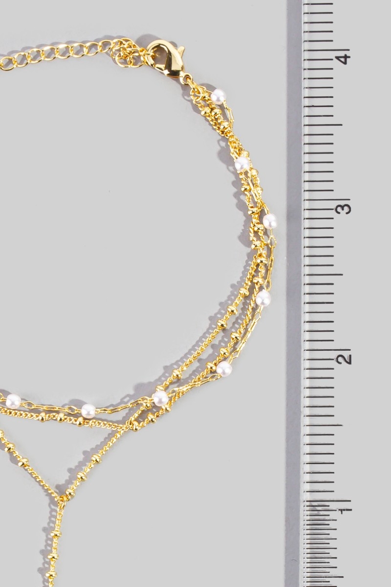 - This bracelet brings a stunning layered chain pearl bead finger style. Unveil a new dimension of sophistication as this bracelet effortlessly enhances the elegance of your ensemble.