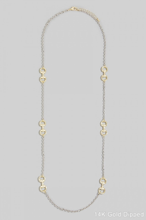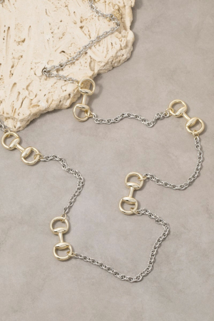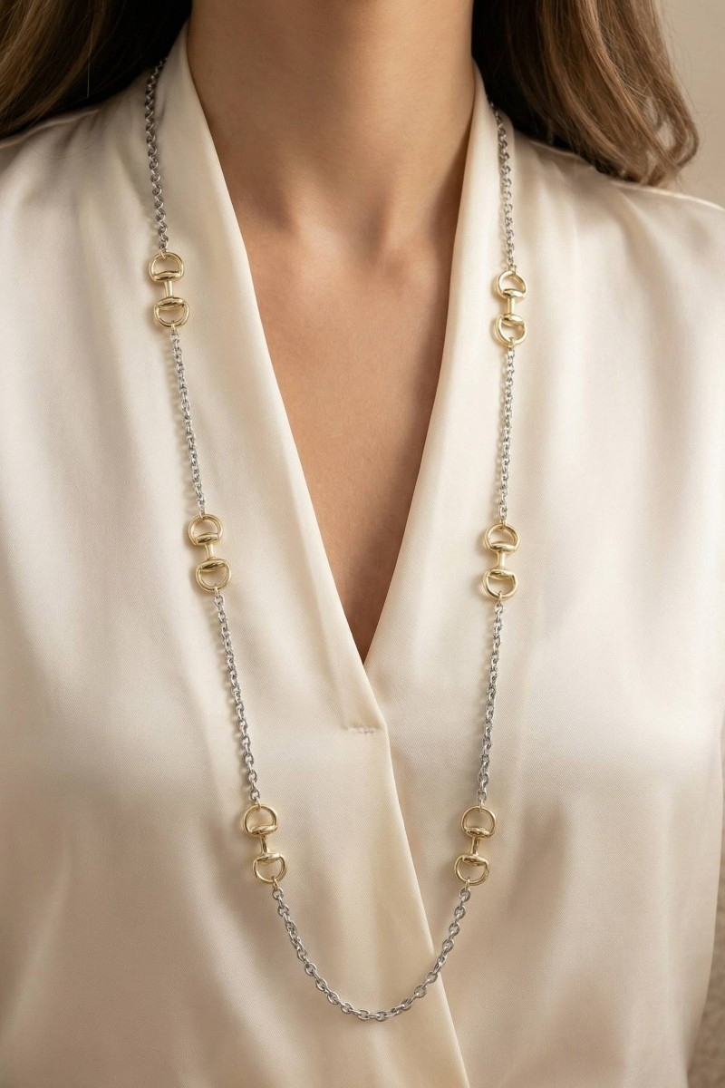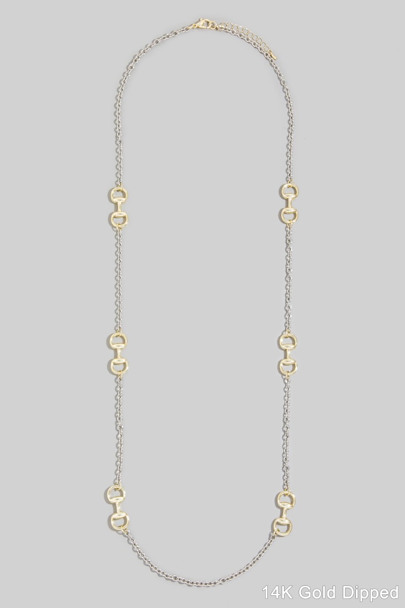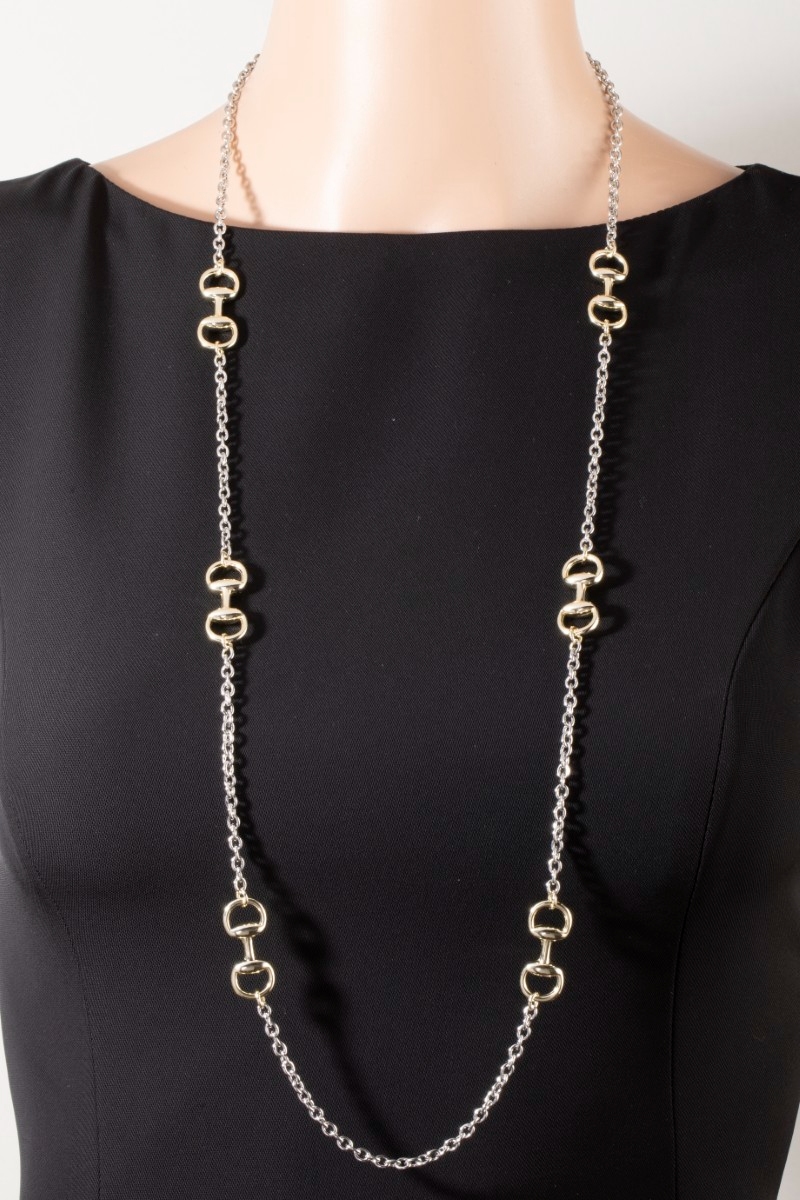 - This necklace showcases a unique long two-tone horsebit station style. Immerse yourself in fashion finesse with this statement necklace.