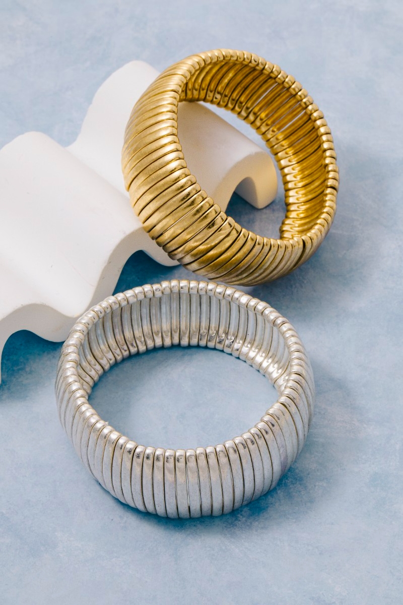 • This bracelet displays a fashionable matte metallic cobra elastic style. Savor the allure of detailed craftsmanship in this exquisite bracelet.