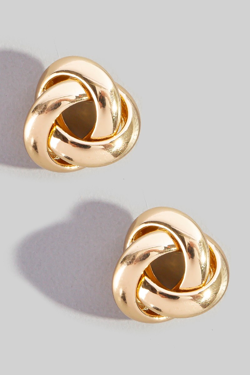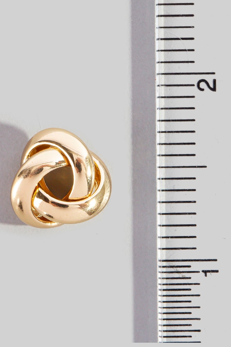 - This pair of stud earrings features a fashionable metallic knot style. Immerse yourself in the details of design, as this accessory effortlessly becomes a conversation starter.