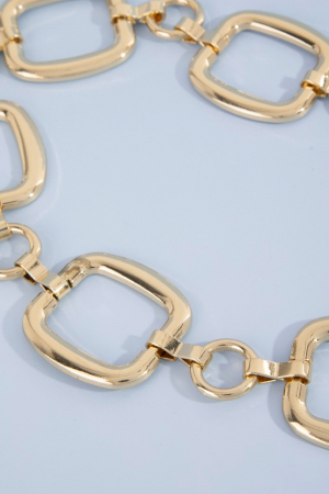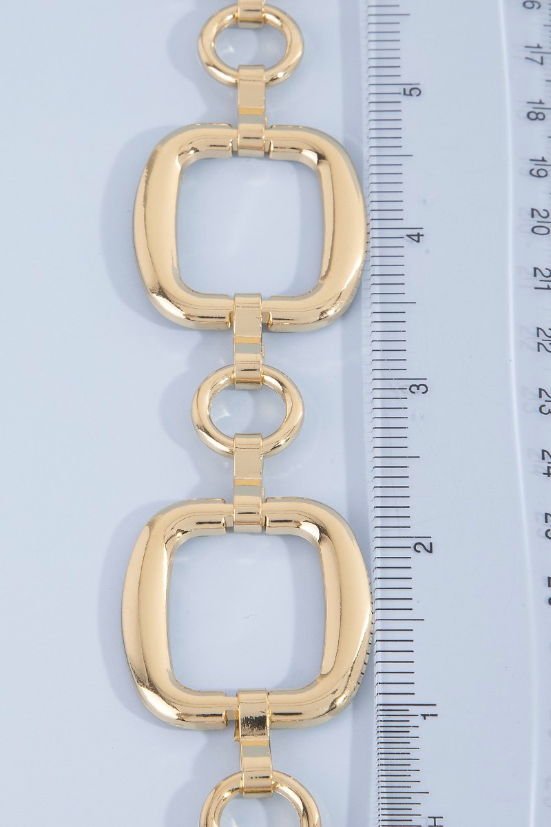 - This chain belt displays a fashionable metallic square and hoop style. Delight in the intricate details that make this chain belt an essential element in expressing your fashion identity.