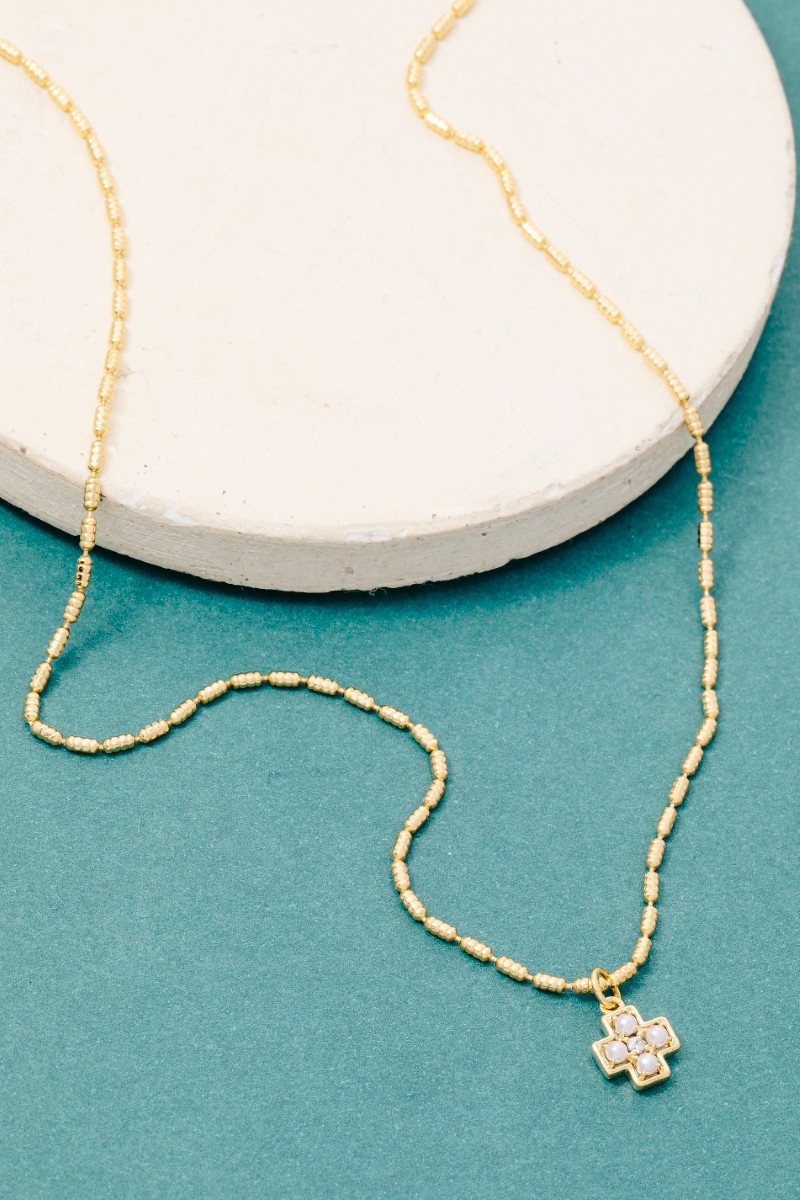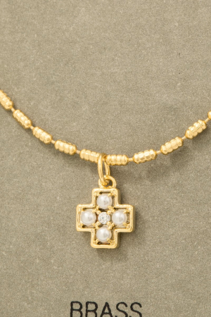 - This pendant necklace features a fashionable mini cross pearl style. Immerse yourself in the world of understated glamour as this pendant necklace effortlessly exudes timeless appeal.