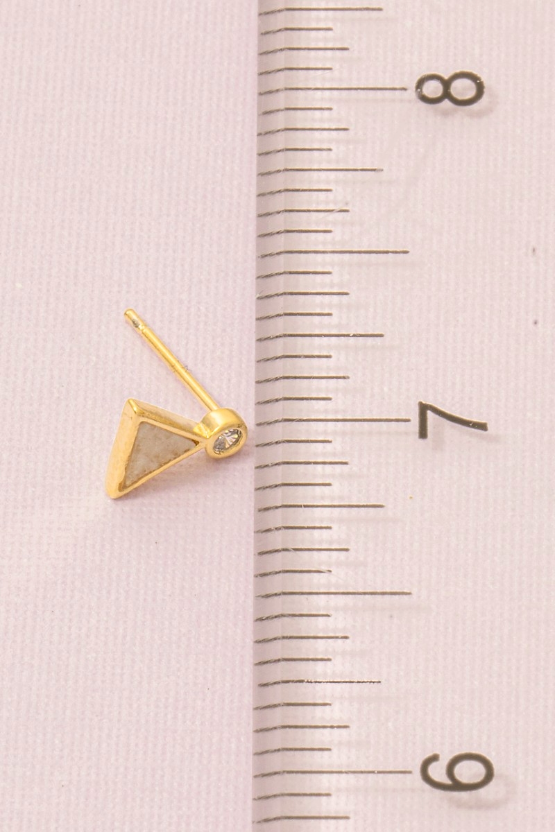 • This trending pair of earrings showcases a timeless mini gemstone triangle stud earrings style. Experience refined sophistication with this understated yet stylish piece.