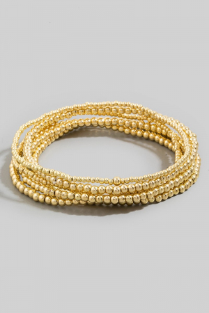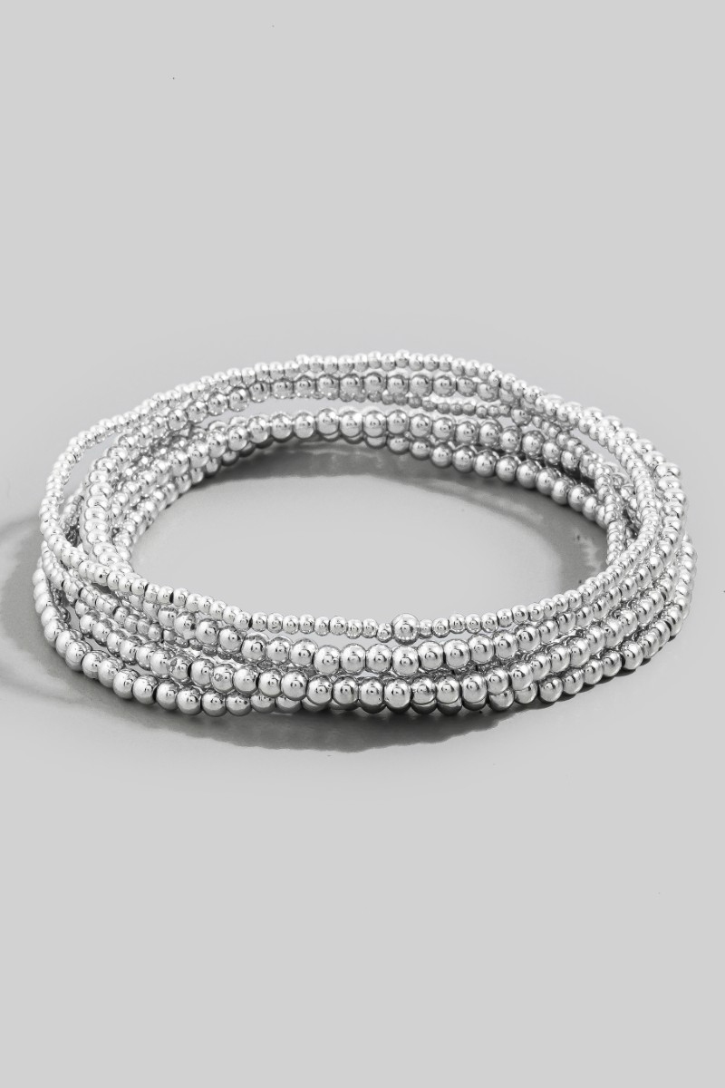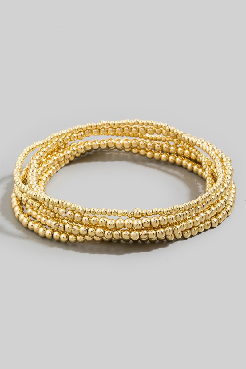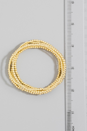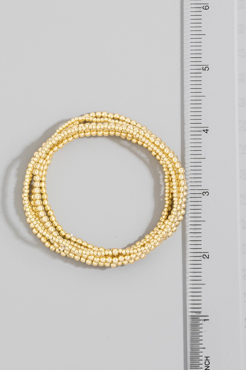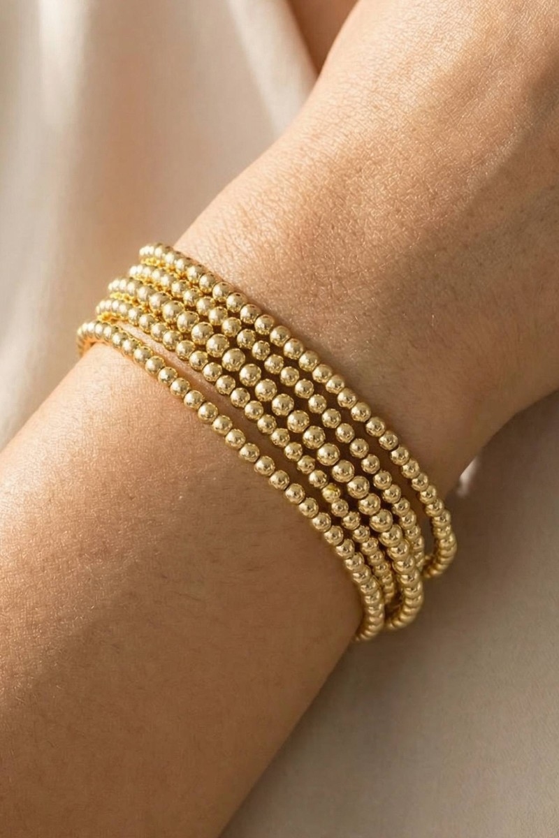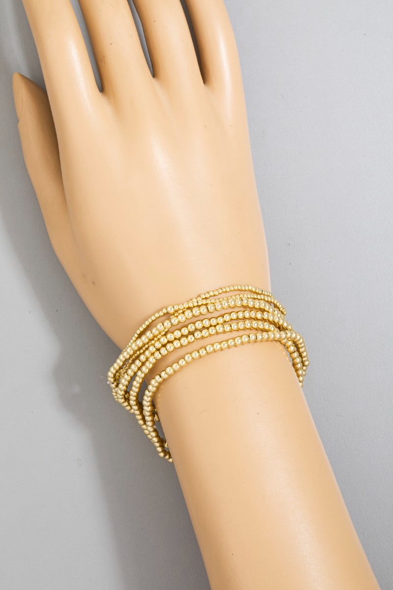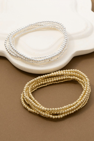 - This bracelet introduces a unique mini metallic beaded elastic set style. Experience refined sophistication with this understated yet stylish piece.