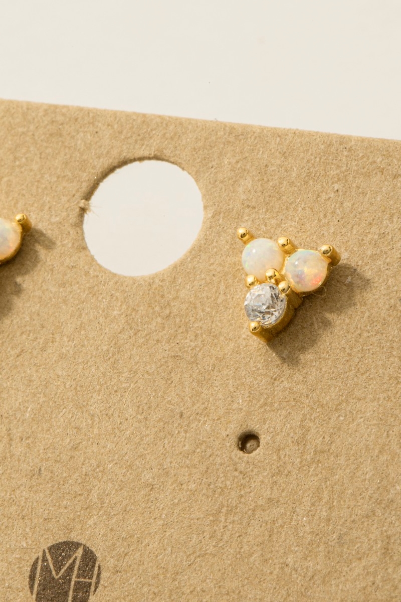 - This trending pair of earrings brings a luxurious mini triple opal stud earrings style. Revel in the intricate design that effortlessly distinguishes this trending pair of earrings, making it a statement piece.