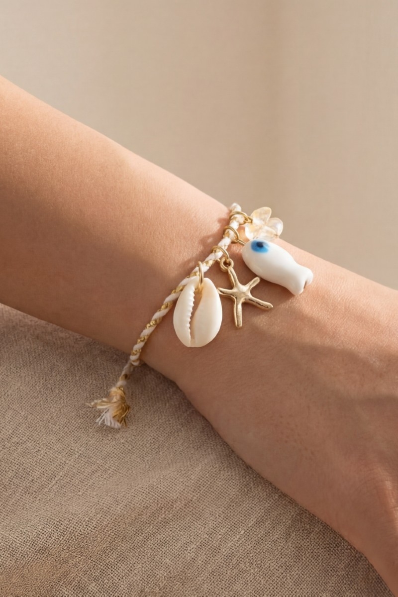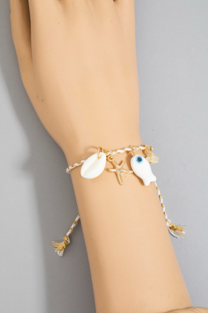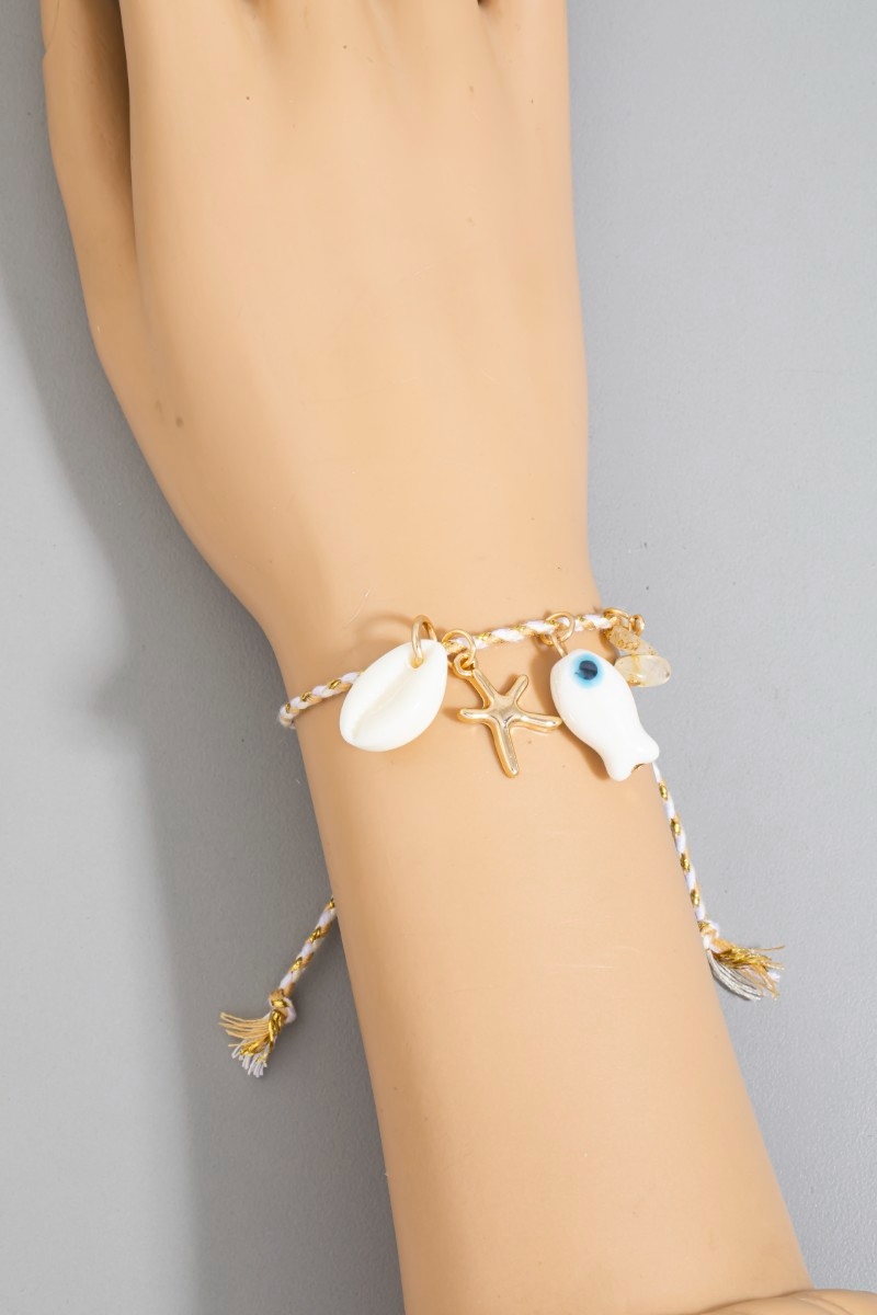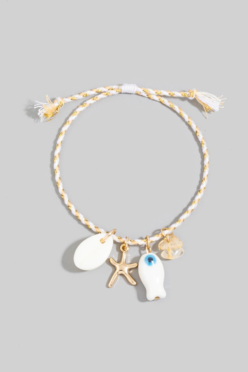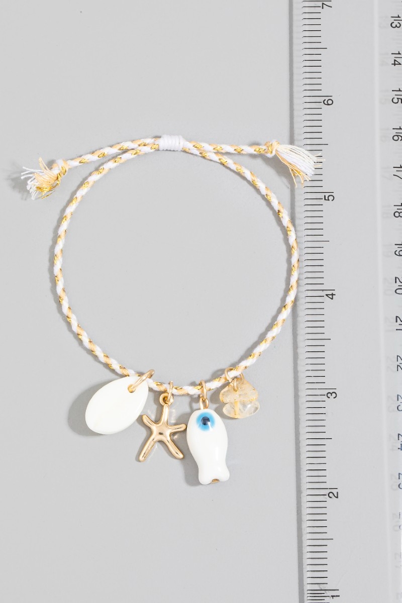 - This bracelet adds a modern mixed metallic and ceramic sea life charms cord style. Step into a world of refined taste as this bracelet effortlessly refines the details of your outfit.