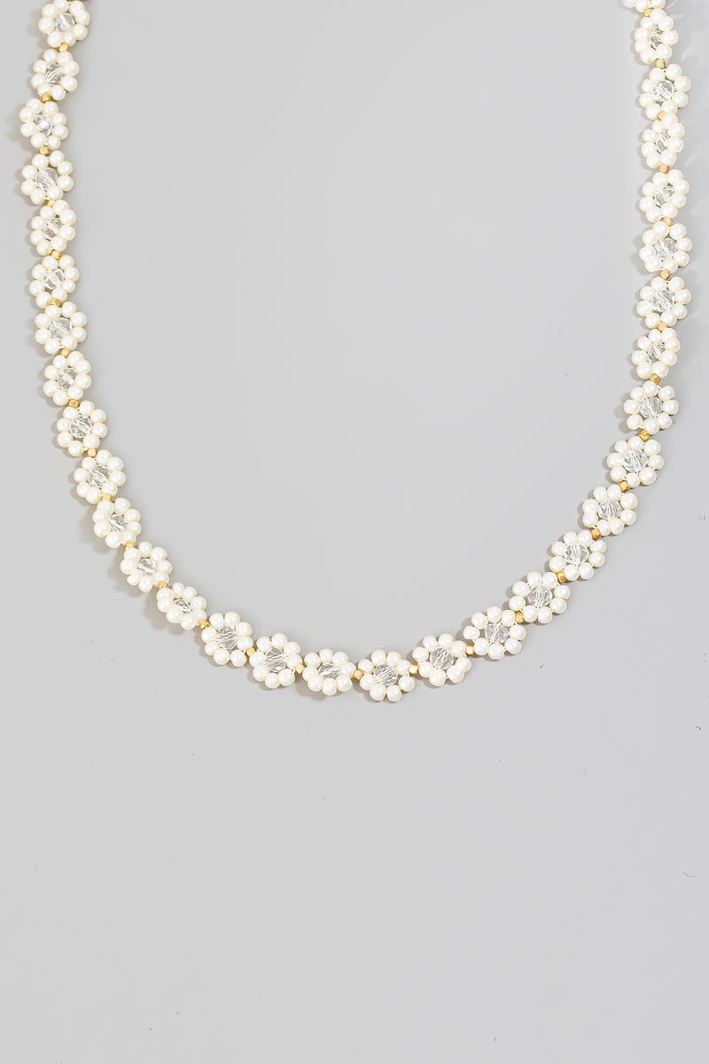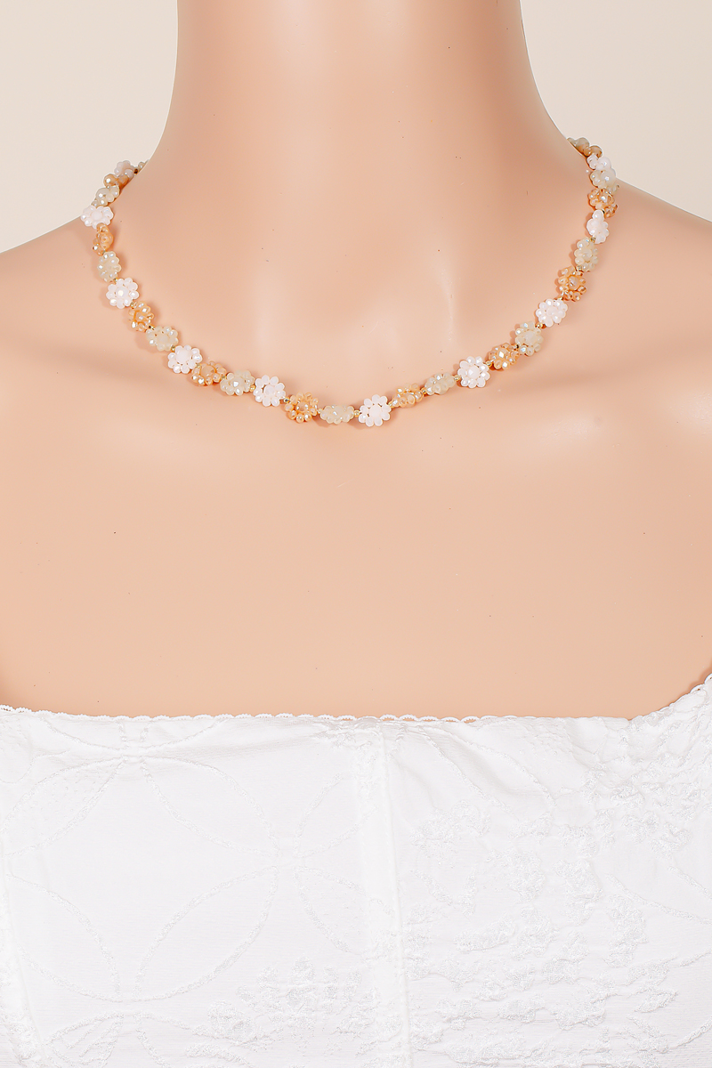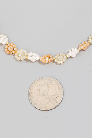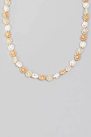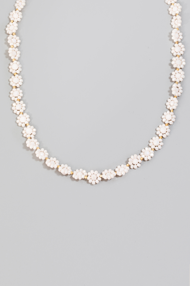 - This chain necklace introduces a unique multi beaded flower style. Experience the joy of accessorizing with this piece that effortlessly combines versatility and charm.