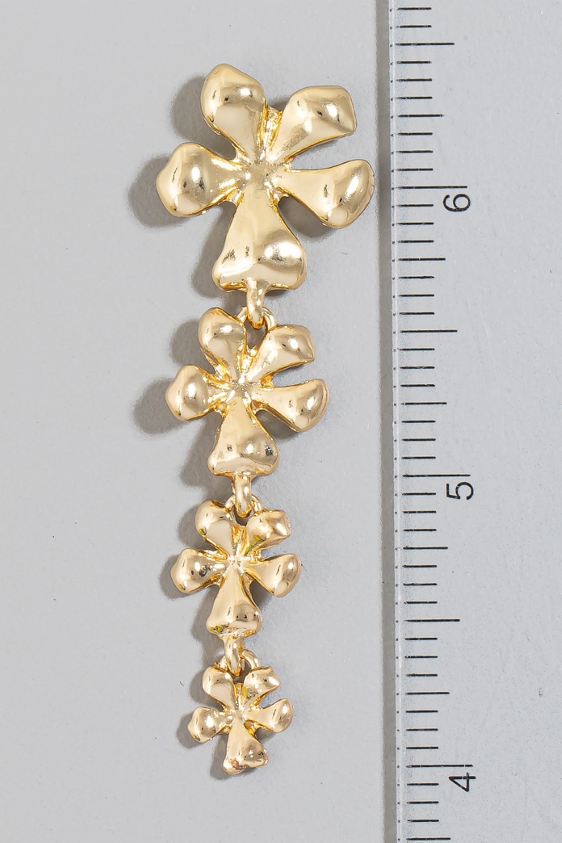 - This pair of earrings showcases a unique multi flower dangle chain style. Experience the joy of accessorizing with this piece that effortlessly combines versatility and charm.