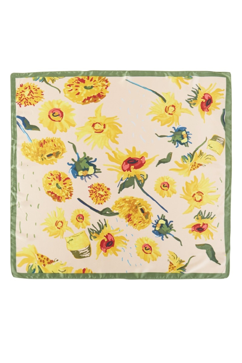 - This scarf introduces a stunning multi sunflower print style. Celebrate individuality with this scarf that effortlessly expresses your unique sense of style.