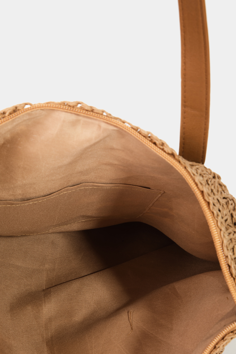 - This tote bag showcases a unique ornate braided style. It also includes faux leather handle. Experience refined sophistication with this understated yet stylish piece.