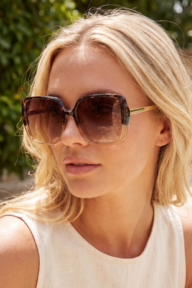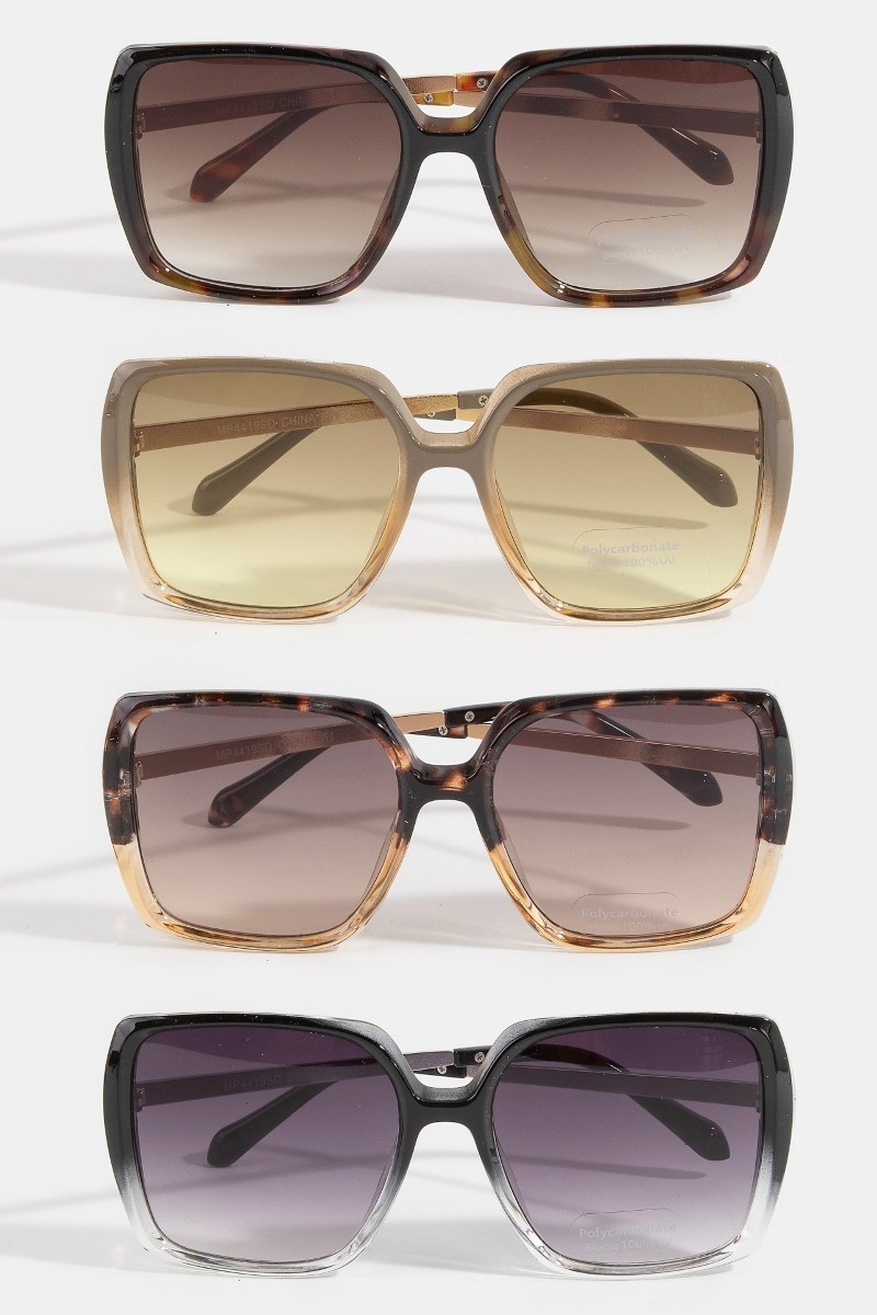 - This set of sunglasses showcases a timeless oversized square tortoise fade sunglasses style. Celebrate individual style with this versatile, eye-catching addition.