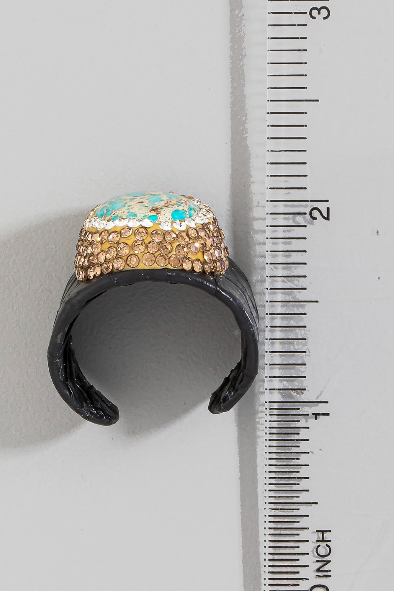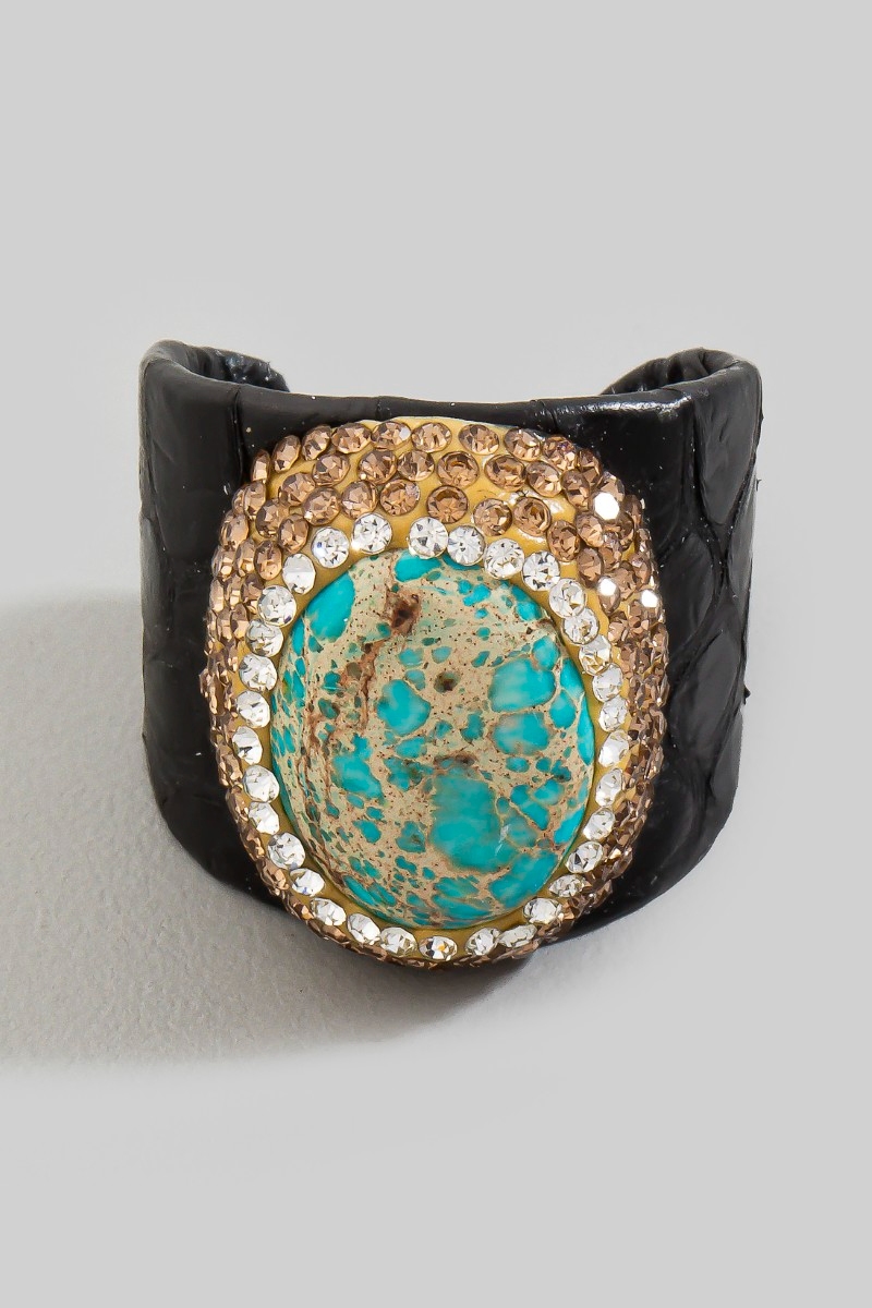 • This ring introduces a unique pave emperor jasper stone with leather band style. Indulge in the artistry of accessorizing with this unique piece.
