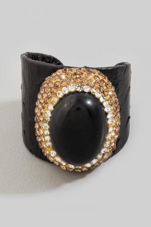 - This ring adds a modern pave onyx stone with leather band statement style. Savor the allure of detailed craftsmanship in this exquisite ring.