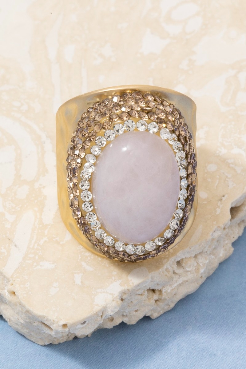 - This ring introduces a stunning pave rose quartz stone statement style. Discover the perfect balance of functionality and fashion.