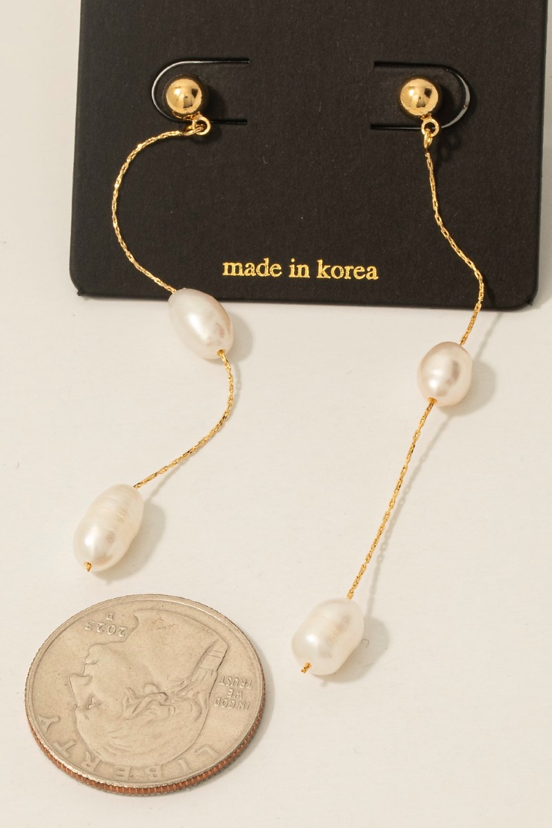 • This pair of stud earrings introduces a stunning pearl beads chain dangle style. Discover the perfect balance of subtlety and flair as this pair of stud earrings effortlessly completes your look.