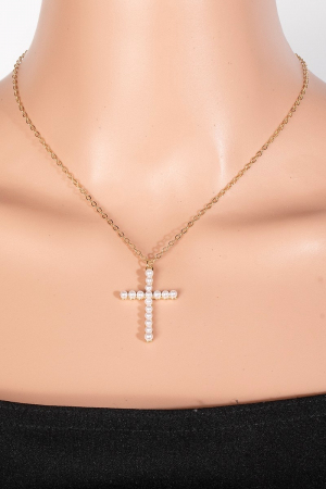 - This necklace brings a luxurious pearl cross pendant style. Savor the allure of detailed craftsmanship in this exquisite necklace.