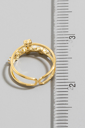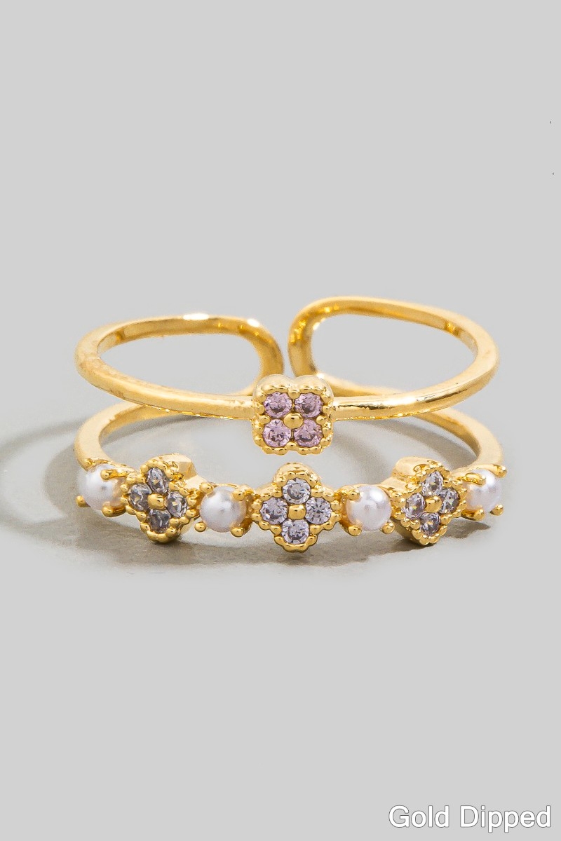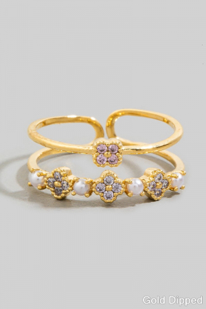 - This ring displays a fashionable pearl cubic zirconia clovers layered open band style. Unveil a new dimension of sophistication as this ring effortlessly enhances the elegance of your ensemble.