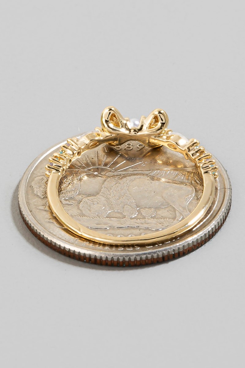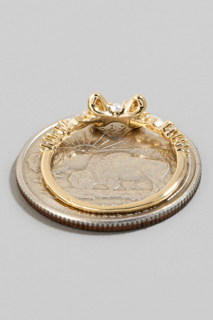 - This ring showcases a unique gold dipped pearl stud ribbon band style. Celebrate the art of accessorizing with this piece that effortlessly encapsulates modern trends.
