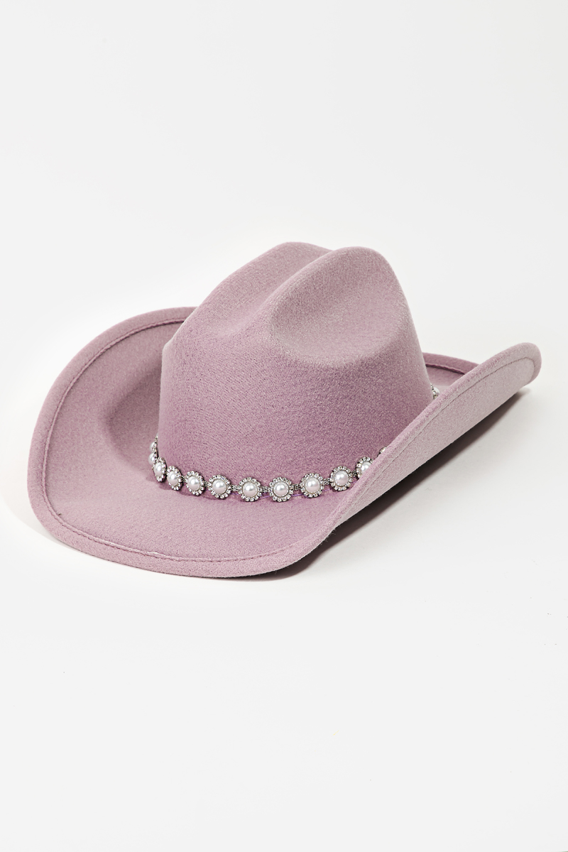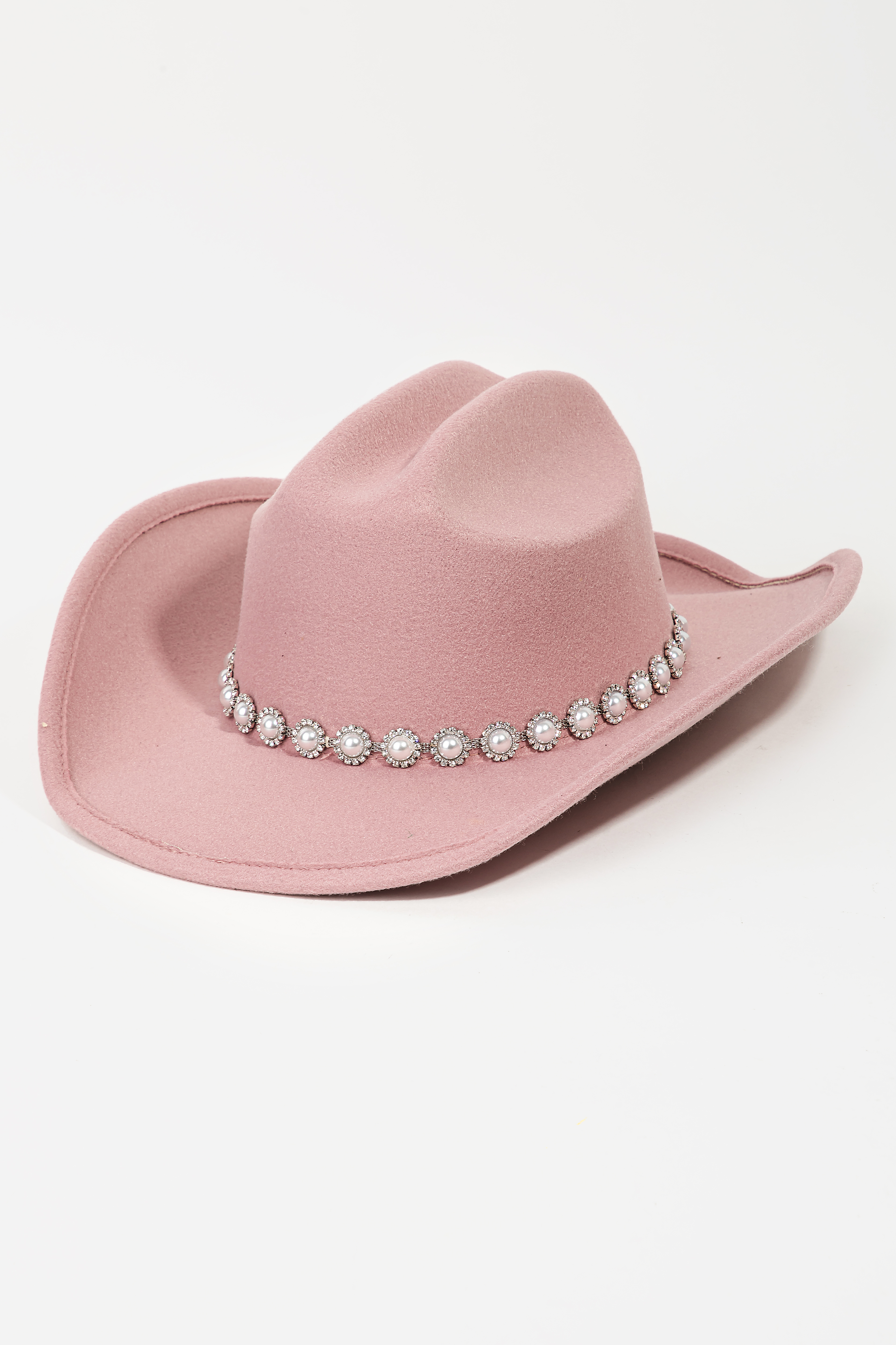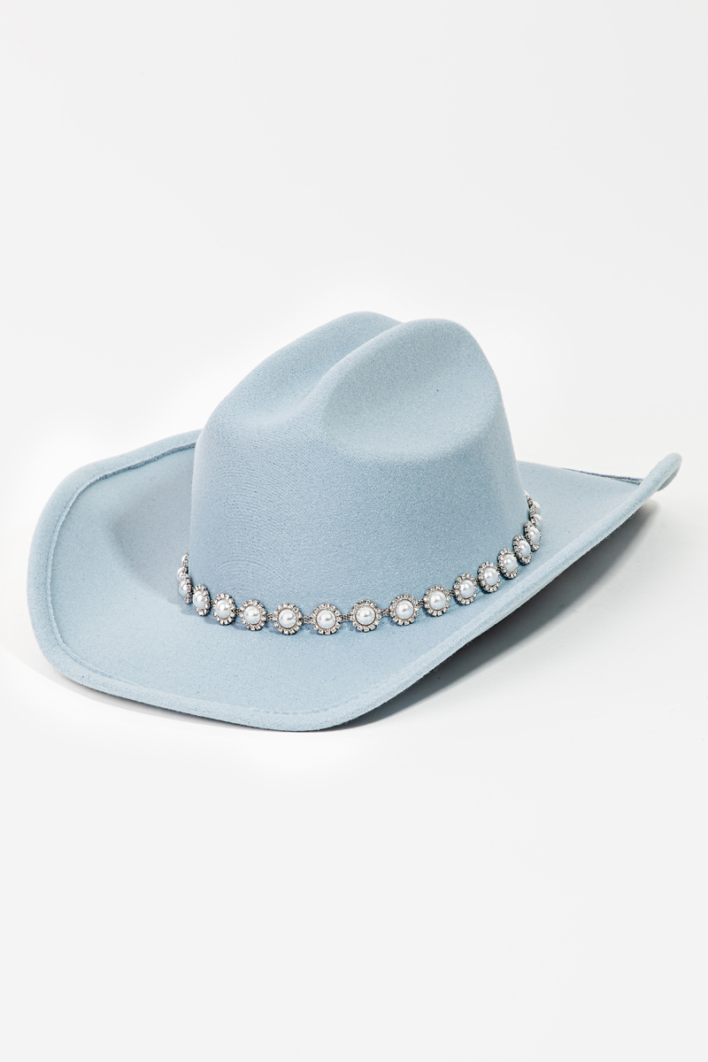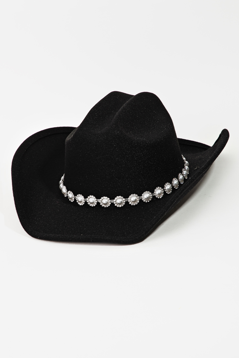 - This cowboy hat introduces a unique pearl studded fashion style. Experience a burst of creativity in accessorizing as this piece effortlessly sets the tone for your unique style.