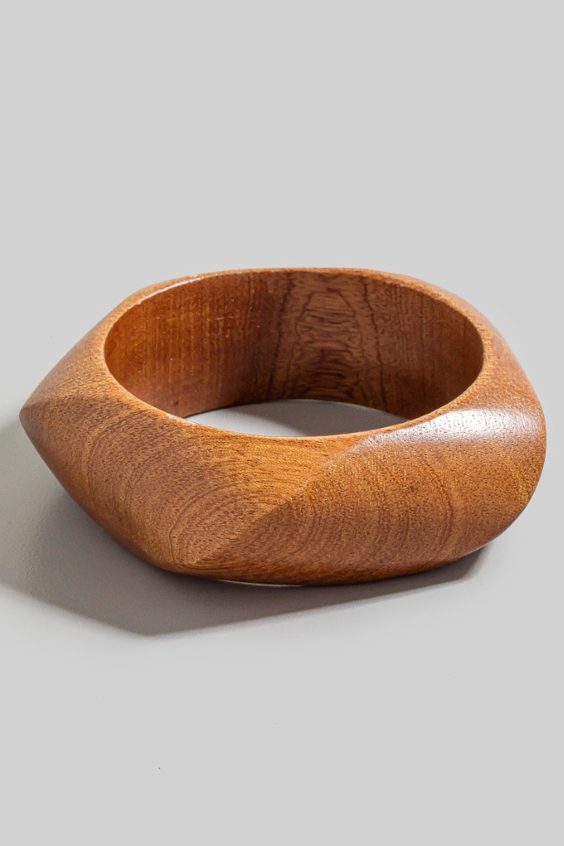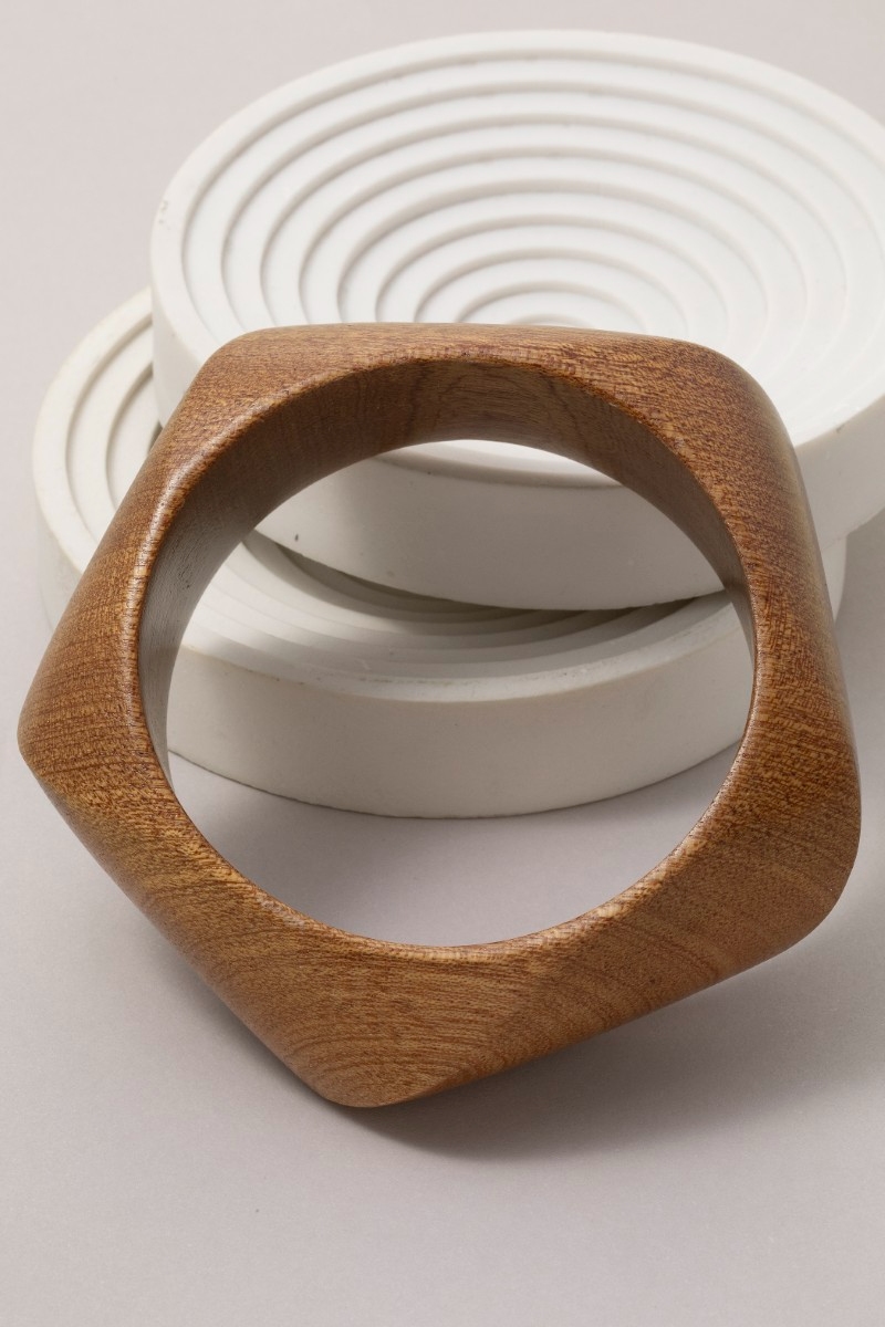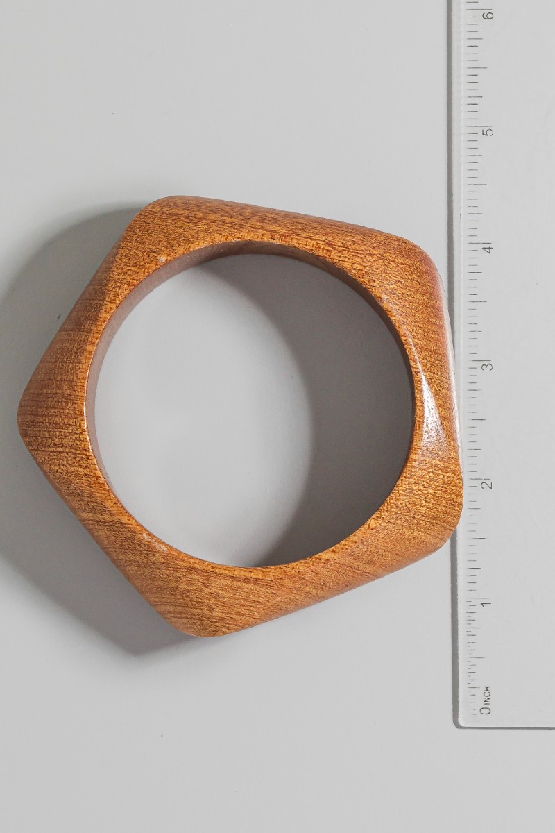 • This bangle bracelet showcases a unique pentagon shape wooden style. Savor the craftsmanship that goes beyond the ordinary, as this bangle bracelet effortlessly captivates attention.