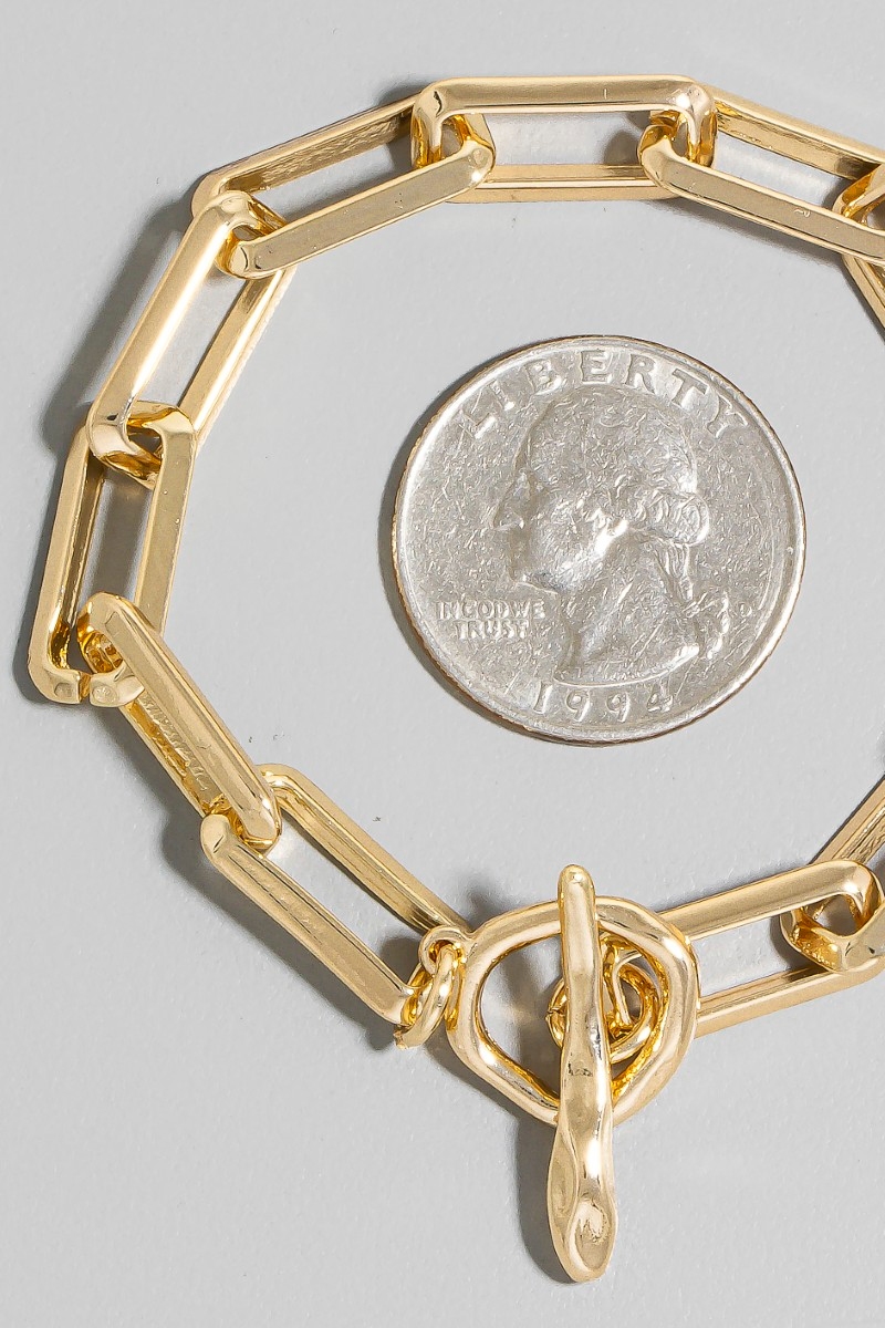 - This chain bracelet displays a vibrant rectangle toggle style. Indulge in the allure of exquisite craftsmanship as this chain bracelet effortlessly adds a touch of luxury to your attire.