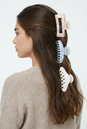 - This hair claw brings a unique rectangular acetate assorted set style. Elevate your ensemble with this chic, timeless hair claw.