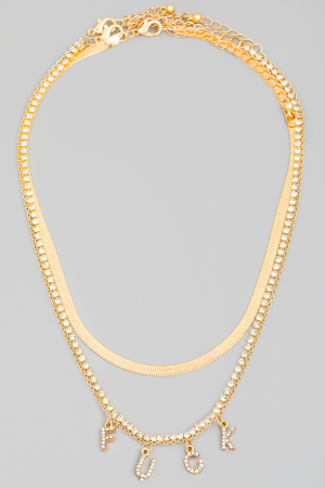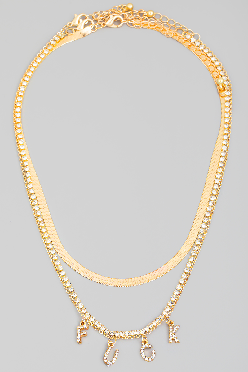 - This necklace features a fashionable rhinestone fuck print style. Unveil modern elegance with this subtly intricate necklace.