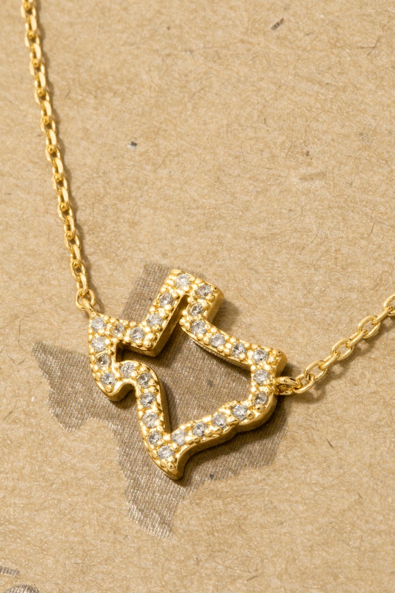 - This trending necklace brings a unique rhinestone trim texas state pendant necklace style. Celebrate individuality with this trending necklace that effortlessly expresses your unique sense of style.