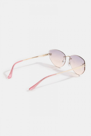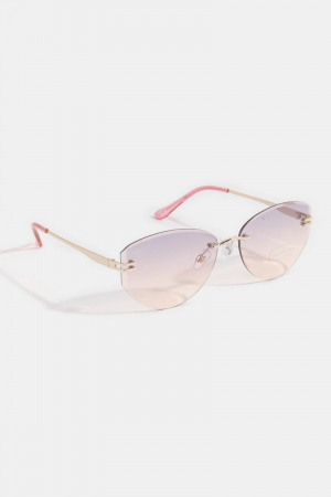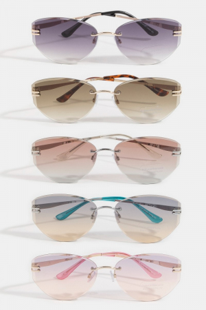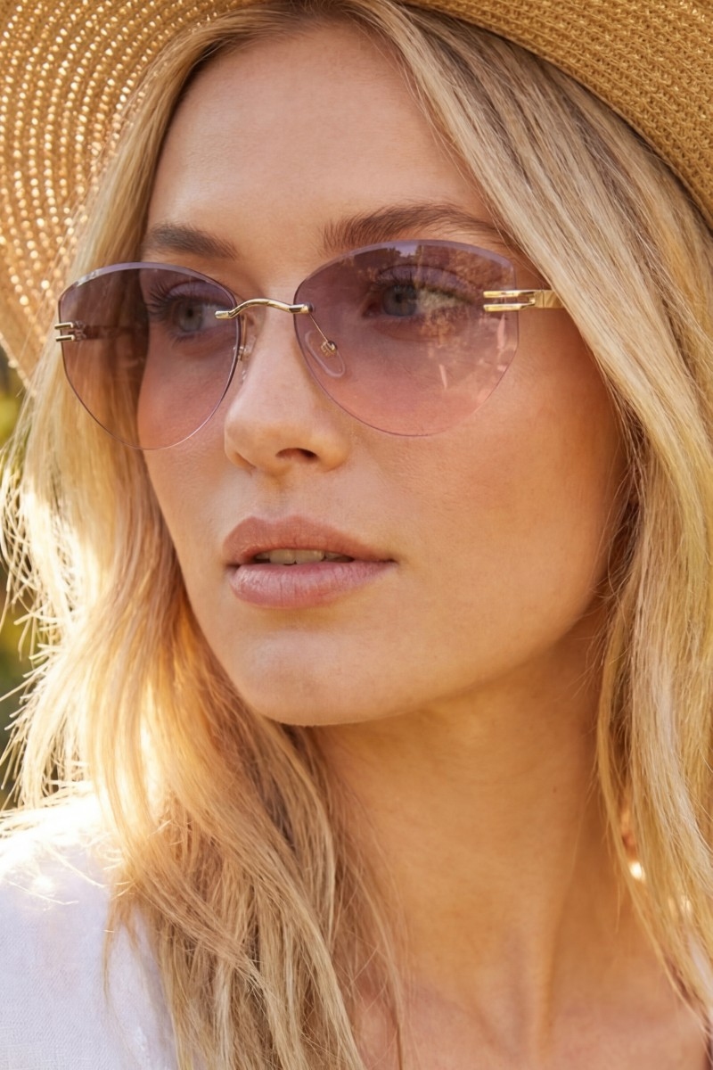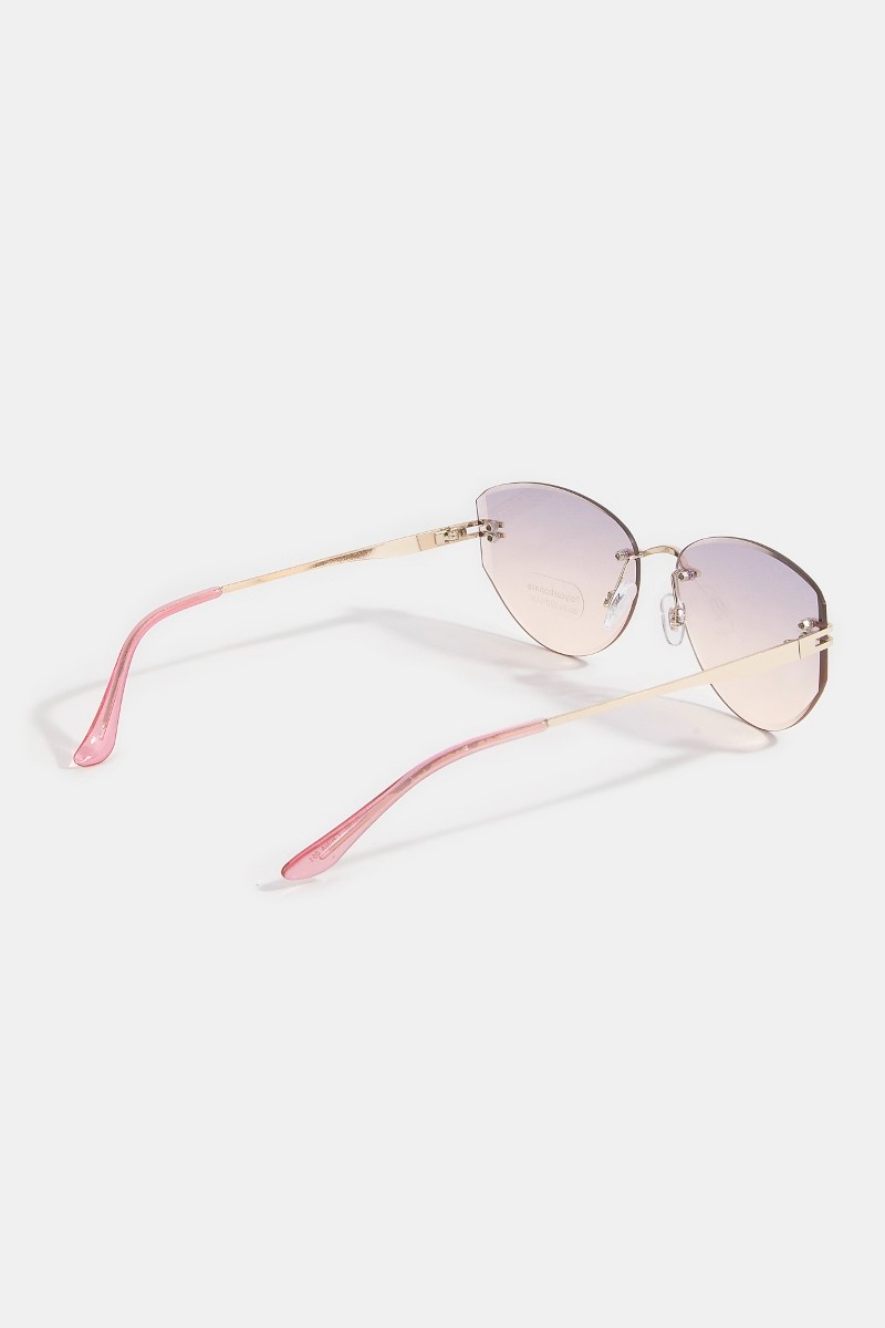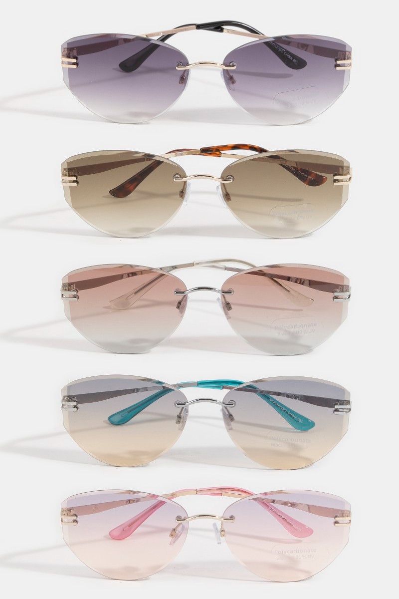 - This set of sunglasses showcases a timeless rimless wide cat-eye bar accent sunglasses style. Indulge in the artistry of accessorizing with this unique piece.