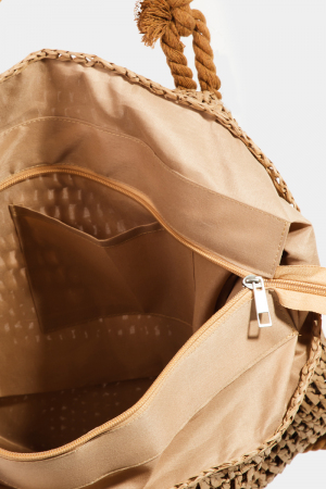 - This tote bag adds a modern rope handle straw braided style. Delight in the nuanced details that make this accessory a testament to fine design and impeccable taste.
