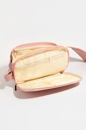 • This bag brings a stunning rose of no mans land faux leather cosmetic style. Witness the transformative power of accessories as this piece effortlessly redefines your fashion narrative.