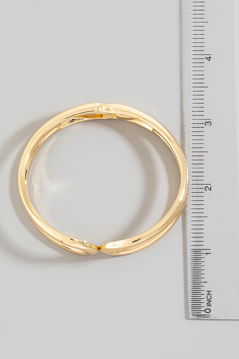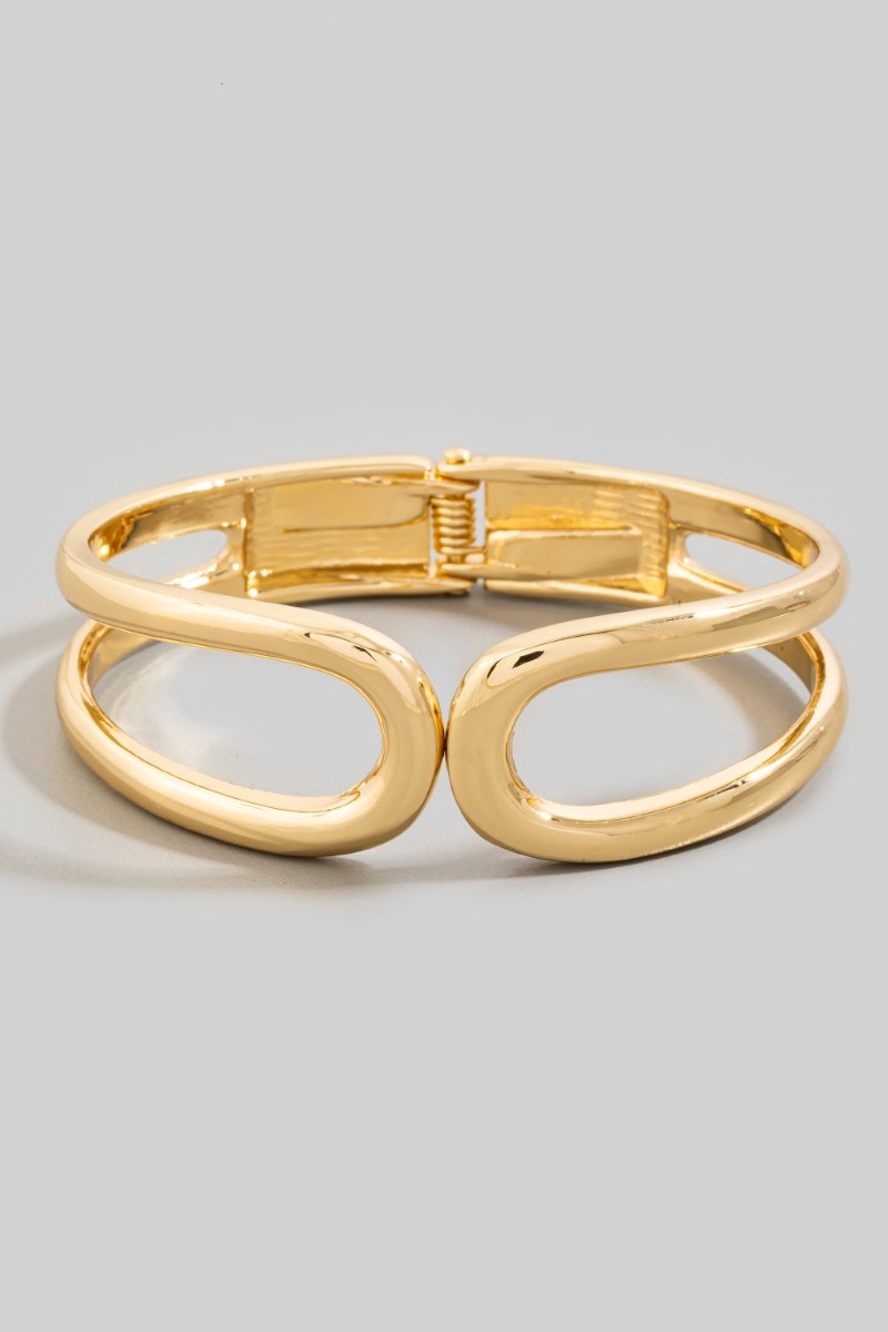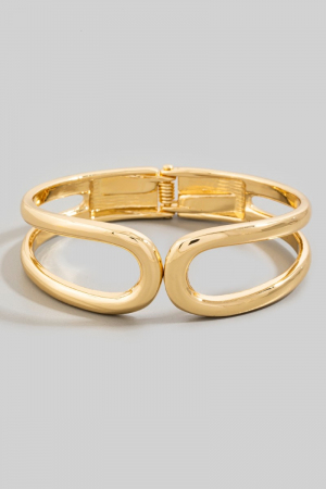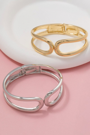 - This bangle bracelet showcases a unique sculpted metal infinity hinged style. Experience refined sophistication with this understated yet stylish piece.