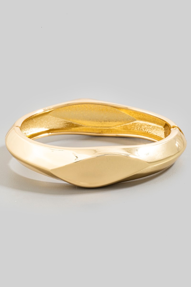 • This bangle bracelet brings a stunning sculpted metallic hinged style. Indulge in the allure of exquisite craftsmanship as this bangle bracelet effortlessly adds a touch of luxury to your attire.