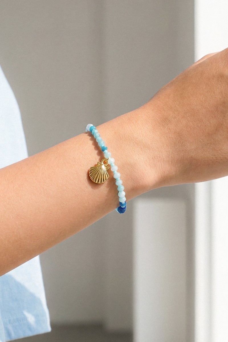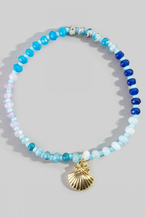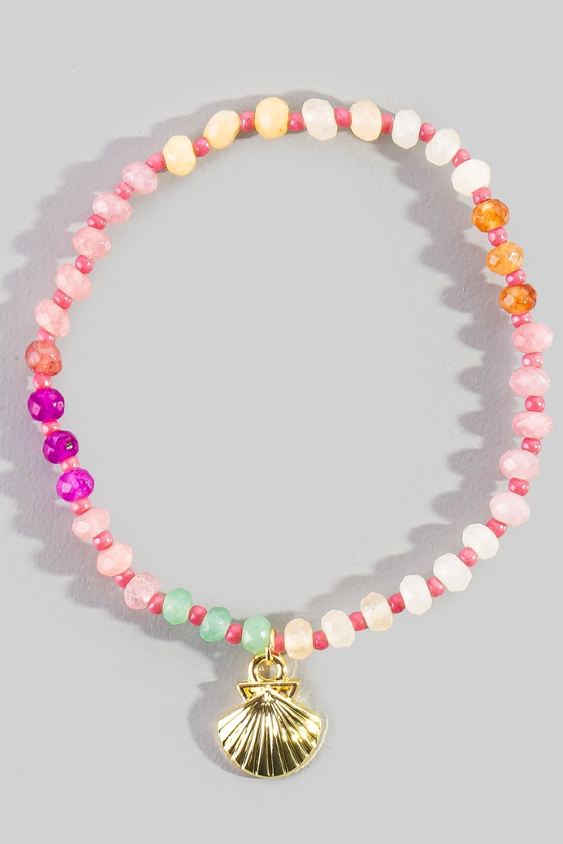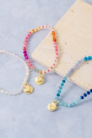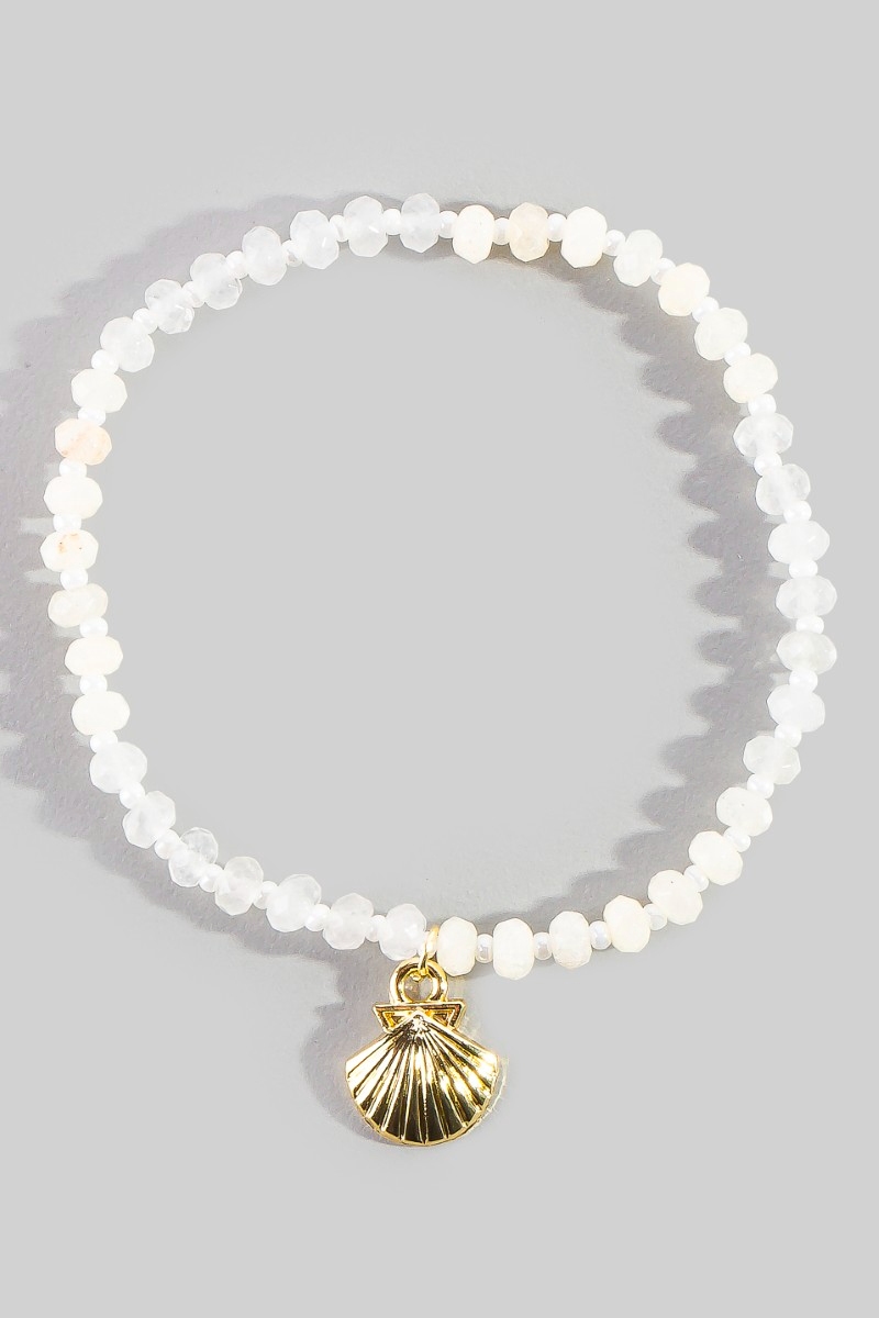 • This bracelet displays a fashionable seashell charm beaded style. Indulge in the artistry of accessorizing with this unique piece.