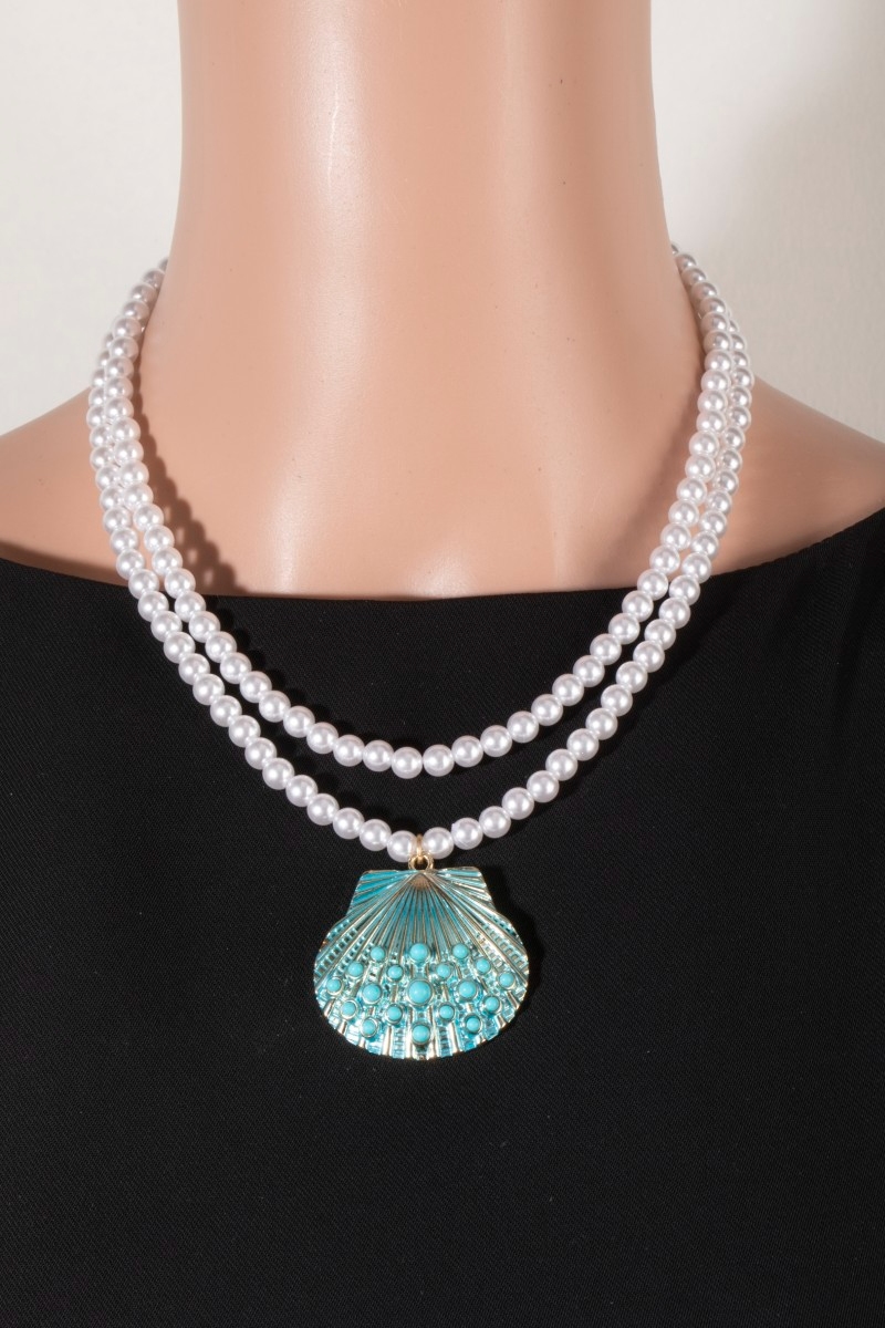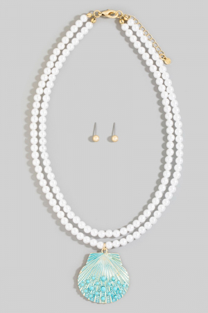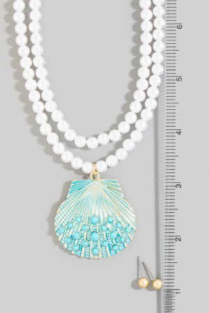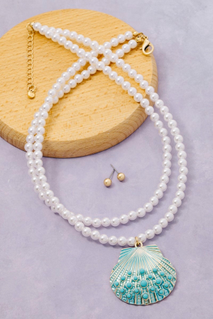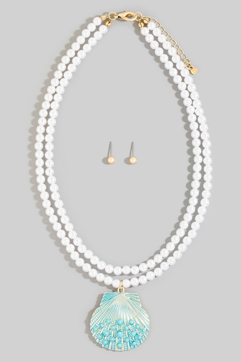 • This necklace set brings a unique seashell pendant layered pearl bead style. Delight in the nuanced details that make this necklace set a testament to fine design and impeccable taste.