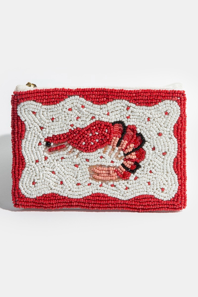 - This coin purse adds a modern seed beaded sea life sea shrimp style. Discover the perfect balance of subtlety and flair as this coin purse effortlessly completes your look.