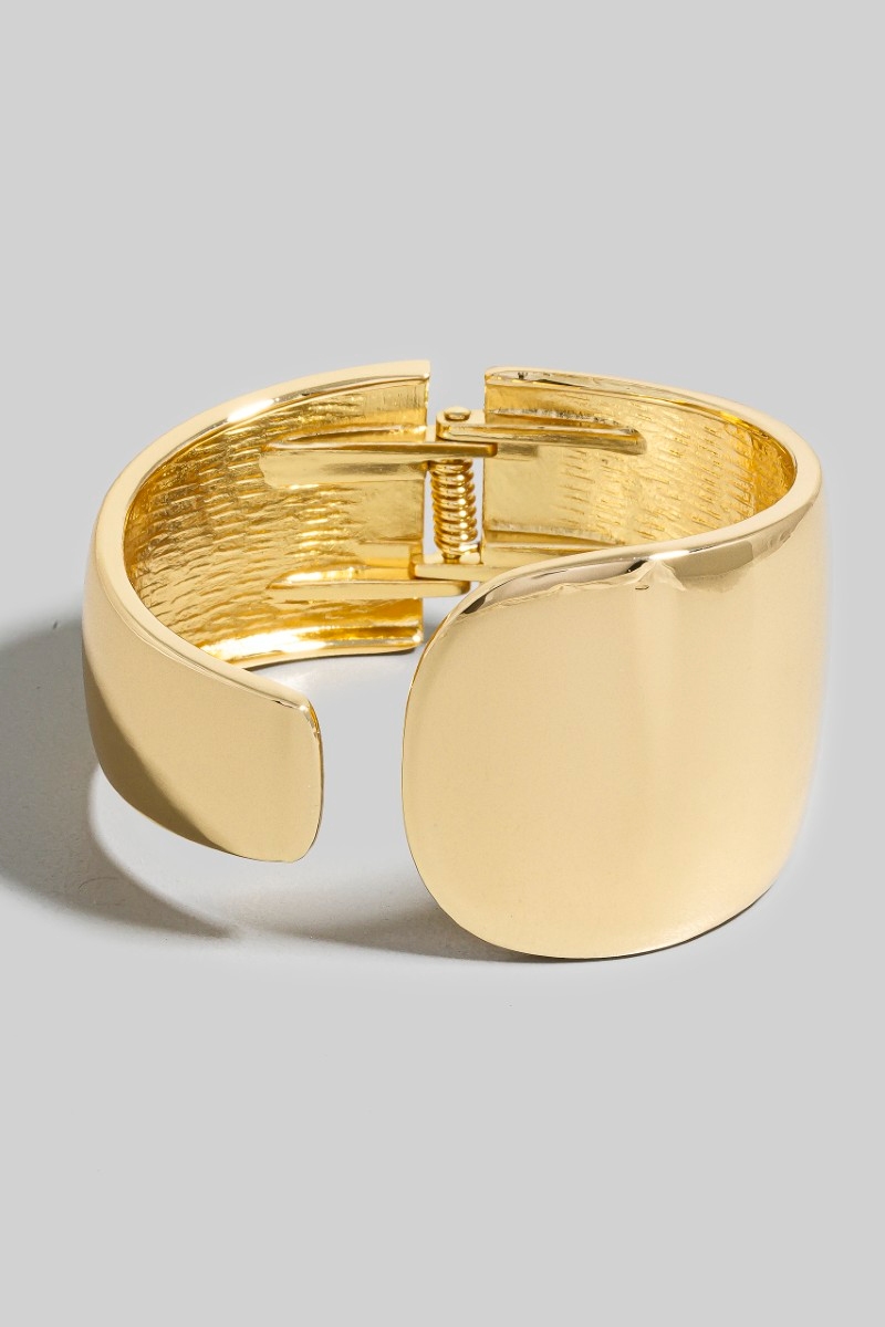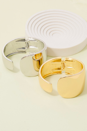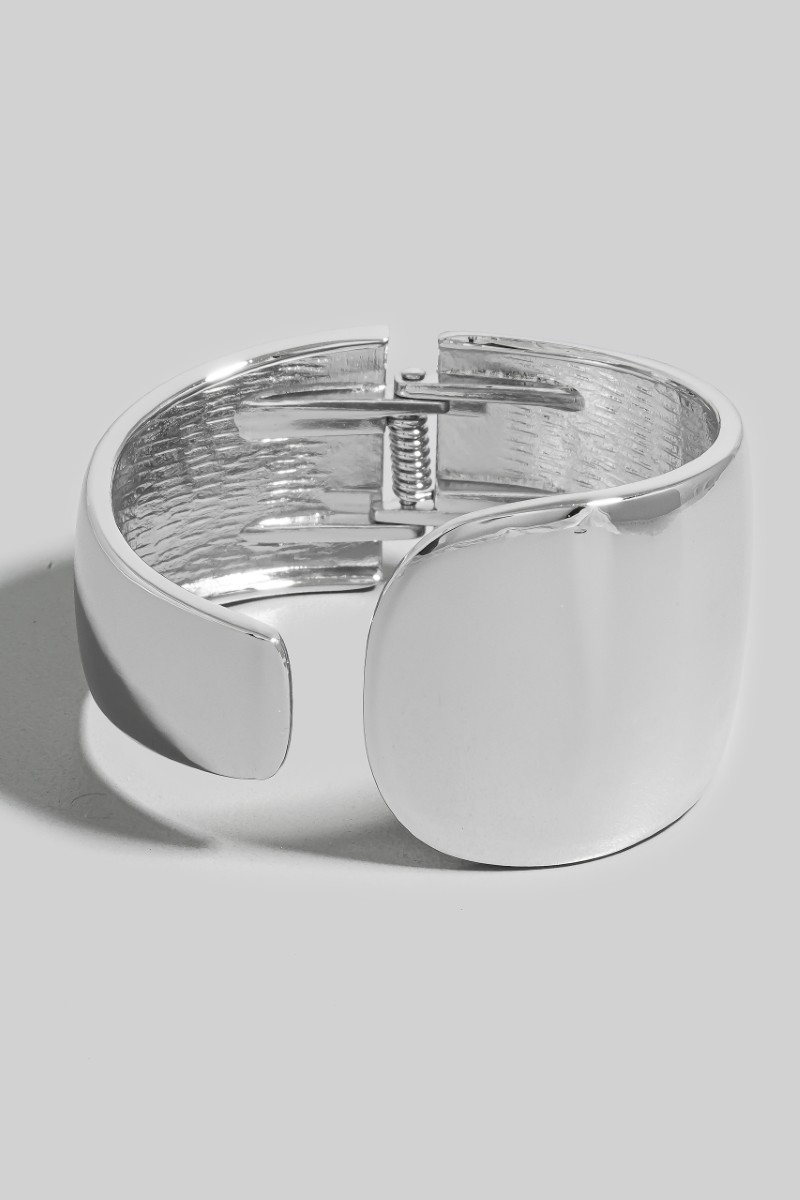 • This cuff bracelet showcases a timeless smooth flat hinged style. Embark on a journey of sartorial refinement as this cuff bracelet effortlessly complements your fashion sense.