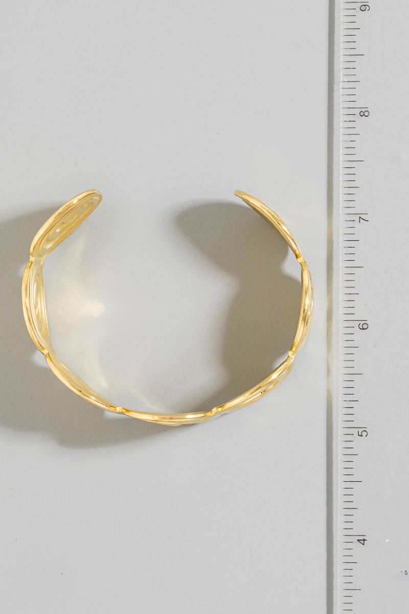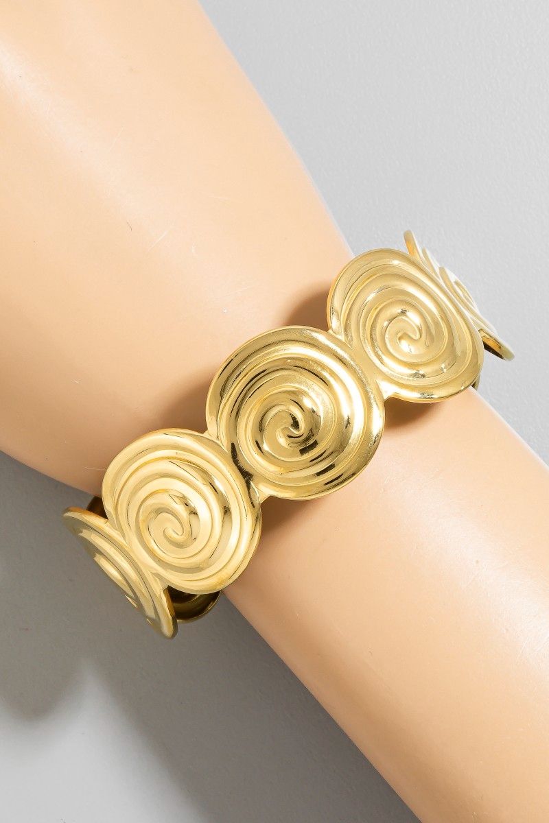 - This cuff bracelet showcases a unique spiral disc link style. Immerse yourself in the details of design, as this cuff bracelet effortlessly becomes a conversation starter.