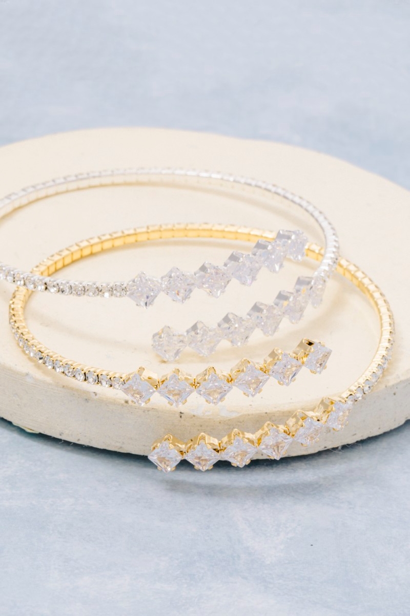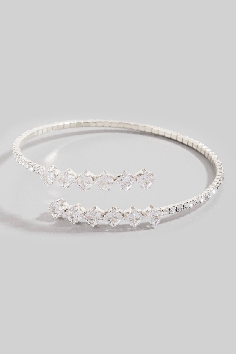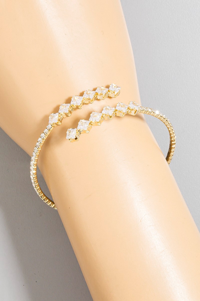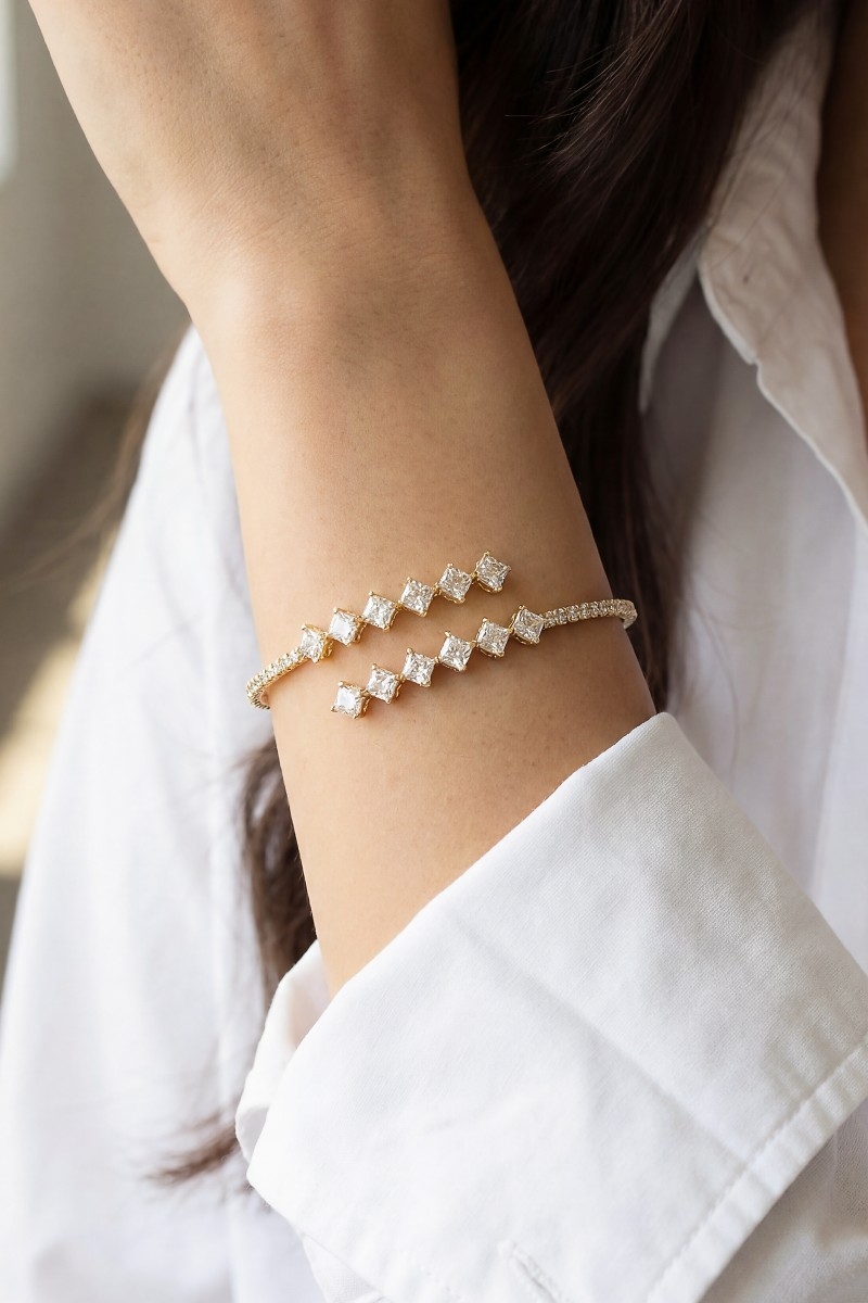• This cuff bracelet displays a fashionable square cubic zirconia tennis chain style. Discover the perfect balance of functionality and fashion.