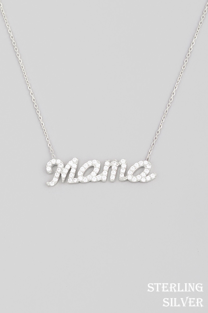 - This necklace brings a luxurious sterling silver pave handwritten mama pendant style. Experience a burst of creativity in accessorizing as this piece effortlessly sets the tone for your unique style.