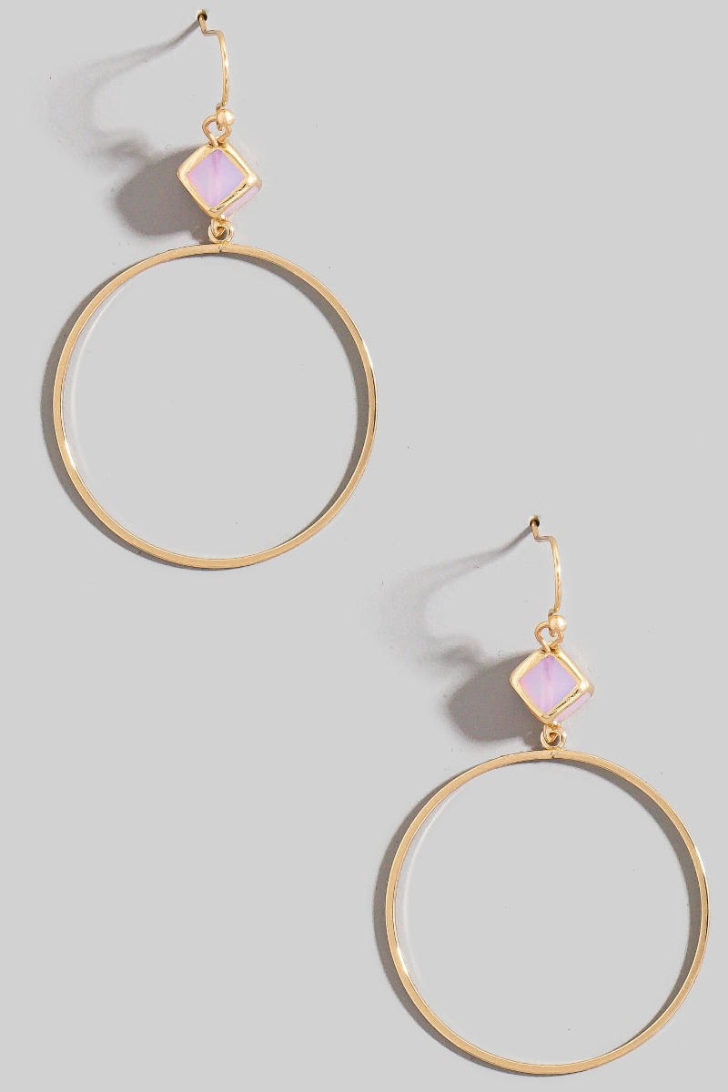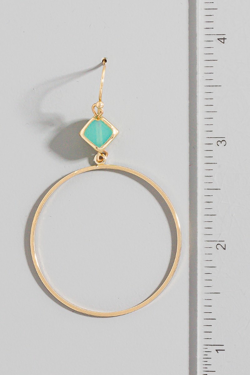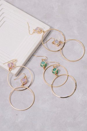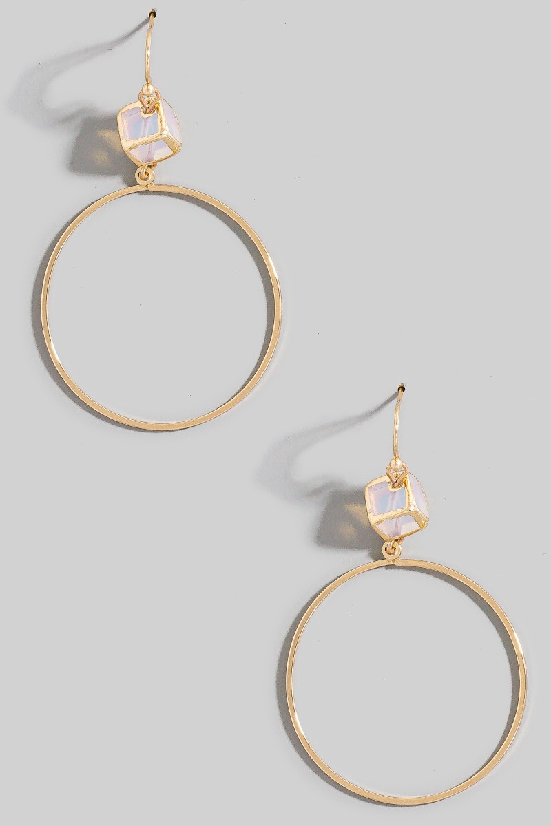 - This pair of dangle earrings showcases a unique stone cube and hoop style. Experience the joy of accessorizing with this piece that effortlessly combines versatility and charm.