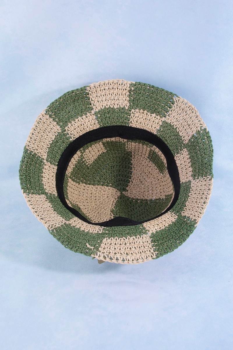 - This bucket hat brings a stunning straw braided checkered style. Delight in the nuanced details that make this bucket hat a testament to fine design and impeccable taste.