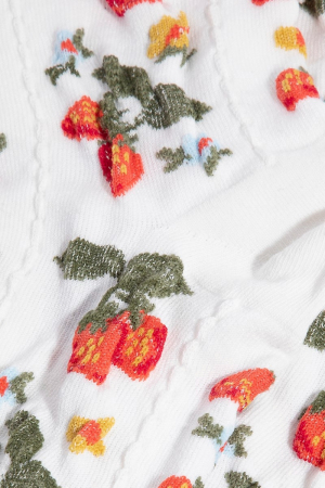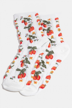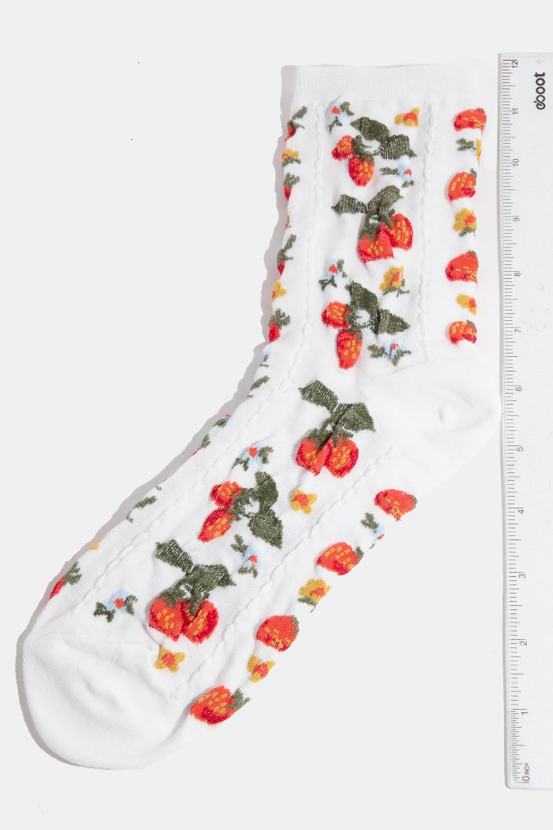 - This pair of socks introduces a unique strawberries and flowers embroidered white style. Unveil modern elegance with this subtly intricate pair of socks.