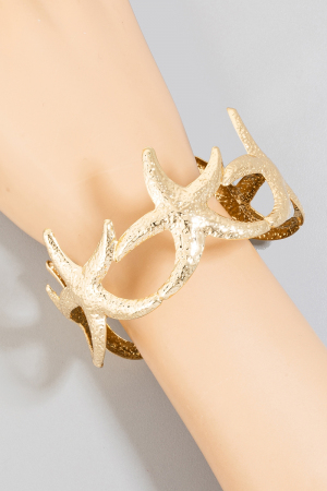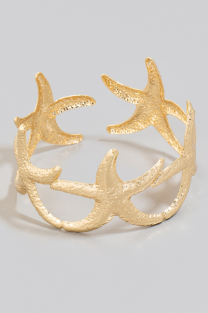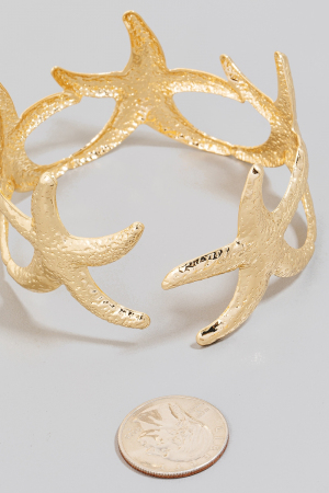 • This cuff bracelet brings a stunning textured metallic starfish style. Elevate your ensemble with this cuff bracelet that effortlessly captures the essence of refined fashion.