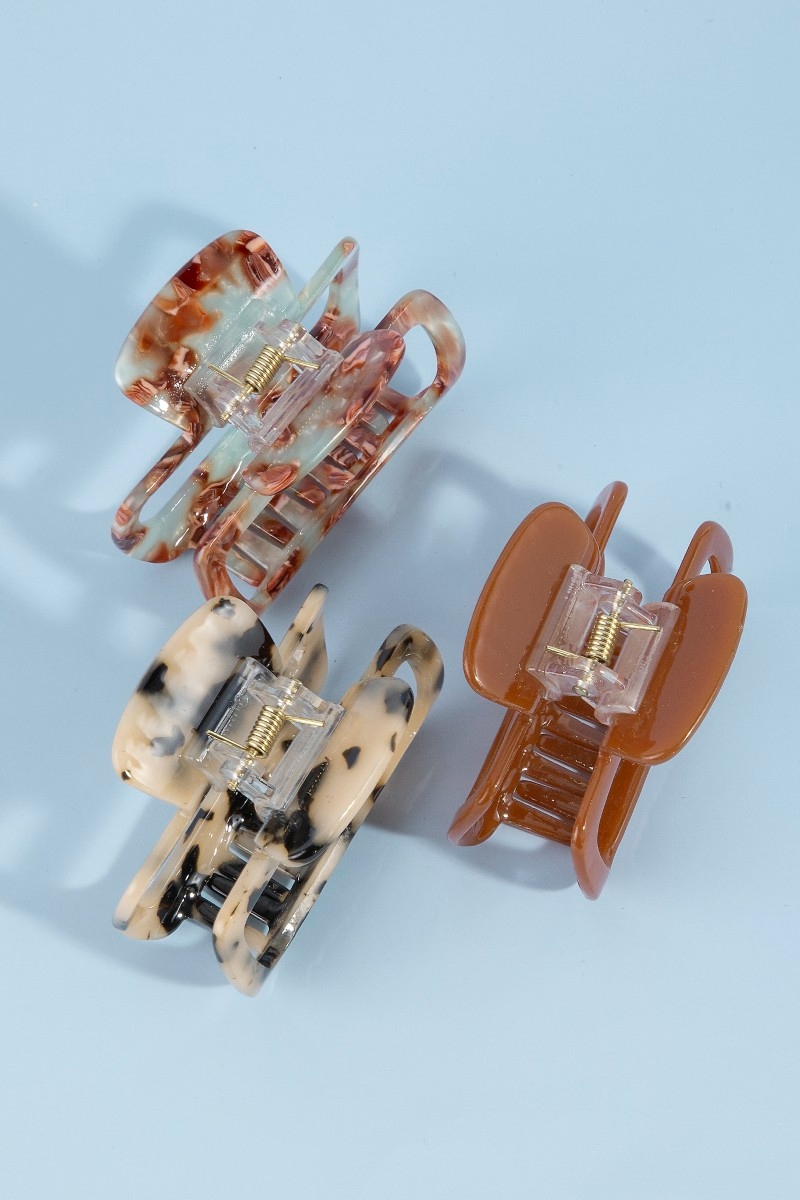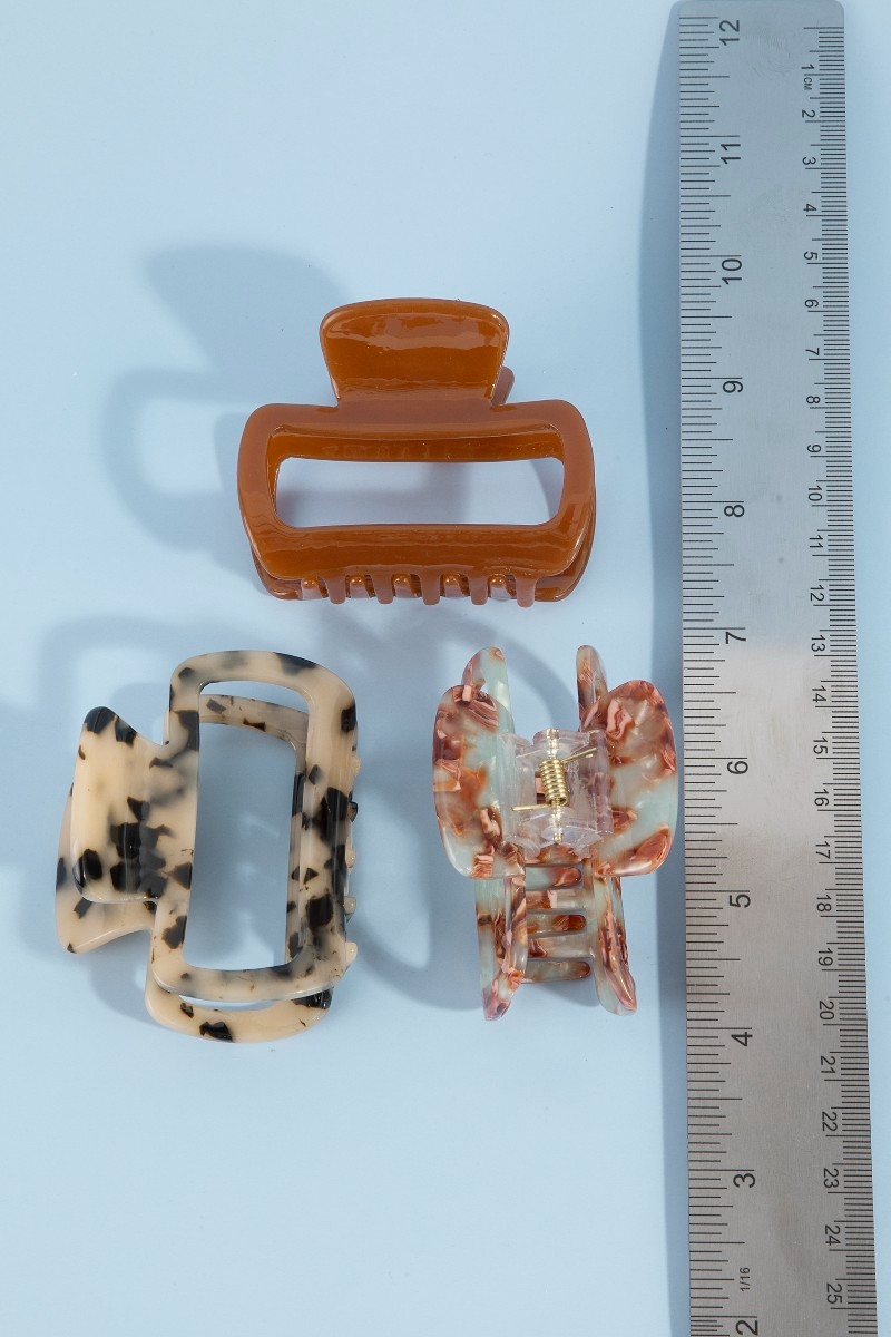- This hair clip adds a modern three piece rectangle cutout jaw s style. Unveil a new dimension of sophistication as this hair clip effortlessly enhances the elegance of your ensemble.