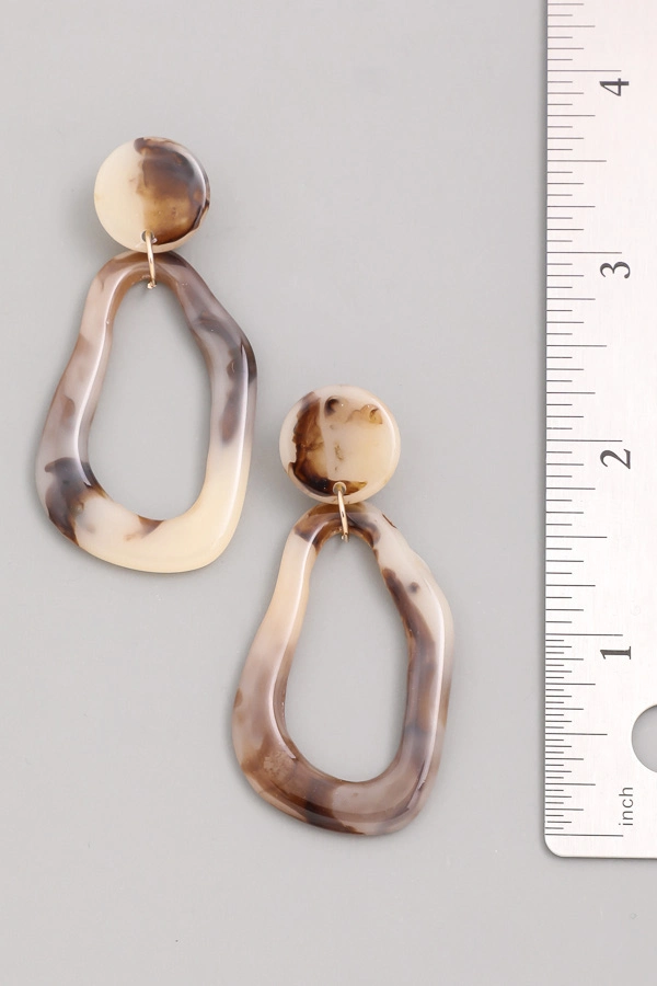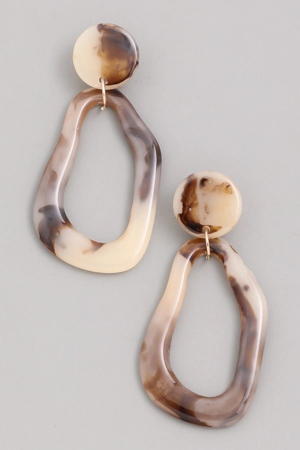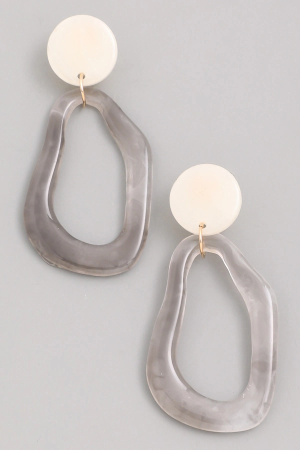 White Stone Scallop Stud Hammered Hoop Drop Earrings