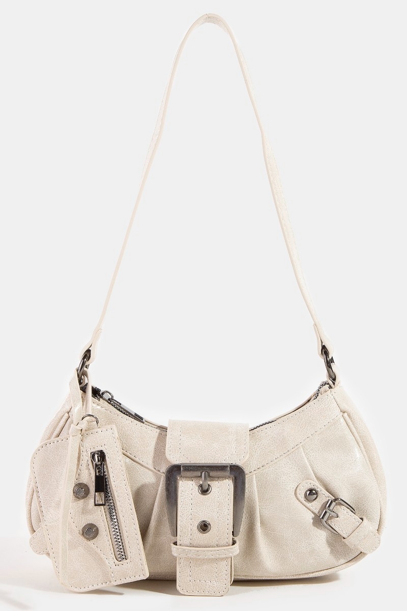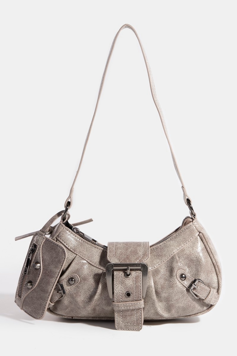 - This hand bag introduces a unique triple belt faux leather style. Embark on a journey of sartorial refinement as this hand bag effortlessly complements your fashion sense.
