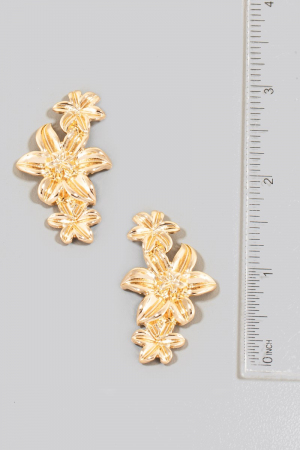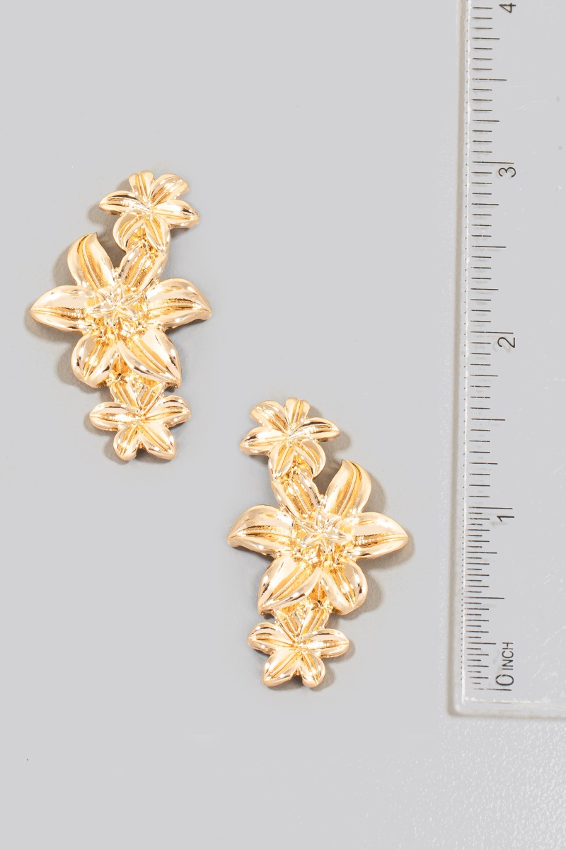 - This pair of dangle earrings displays a vibrant triple metallic flower chain style. Immerse yourself in the world of understated glamour as this pair of dangle earrings effortlessly exudes timeless appeal.